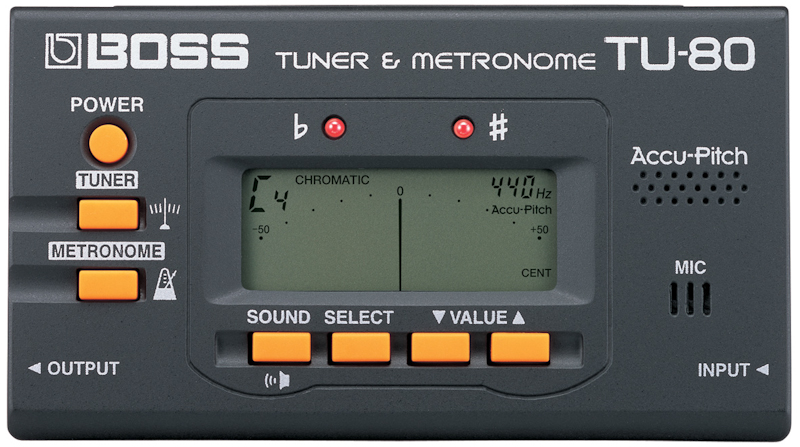 Тюнер-метроном, цвет черный. Темп: 30-250. Питание: 2 батарейки AA.