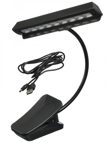 Подсветка для пюпитра DEKKO FL-9030-2 светильник светодиодный для пюпитра или клавишных, крепление типа прищепка, гибкая ножка, 9 светодиодов, питание: встроенные аккумуляторы, USB кабель в комплекте, цвет - черный