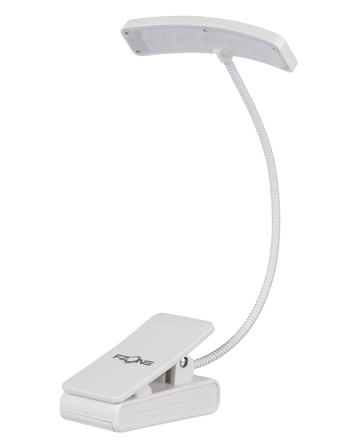 Подсветка для пюпитра FZONE FL-9036 WH «прищепка», 6 светодиодов, гибкое основание (20 см), направленный свет, 2 степени освещённости, питание: DC5V , 1,5м шнур USB и AAAх3 (20ч) в комплекте. цвет - БЕЛЫЙ
