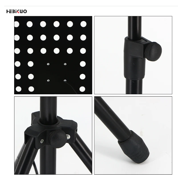 Подставка P-05 имеет прочное треугольное основание, обеспечивающее дополнительный уровень устойчивости. Прочная конструкция гарантирует, что подставка будет оставаться на месте даже на неровных поверхностях, что делает ее идеальной для выступлений как в помещении, так и на открытом воздухе.
