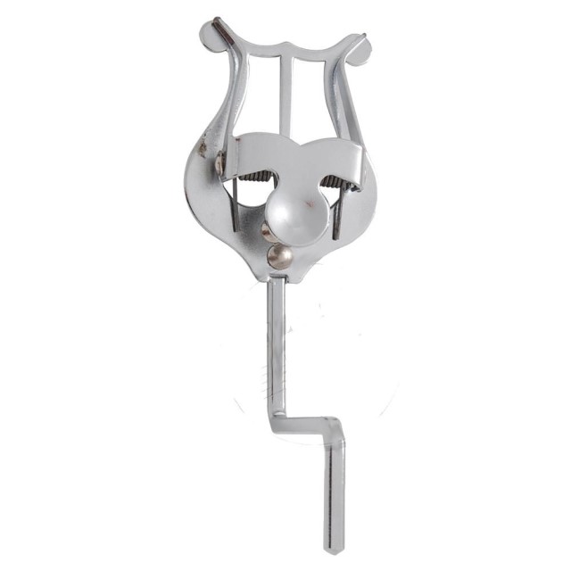 Пюпитр (держатель нот) «Лира» на саксофон альт. Спец. крепление - квадрат 4мм, трижды изогнутый стержень длиной 45/50/20 мм, никелированный металл.