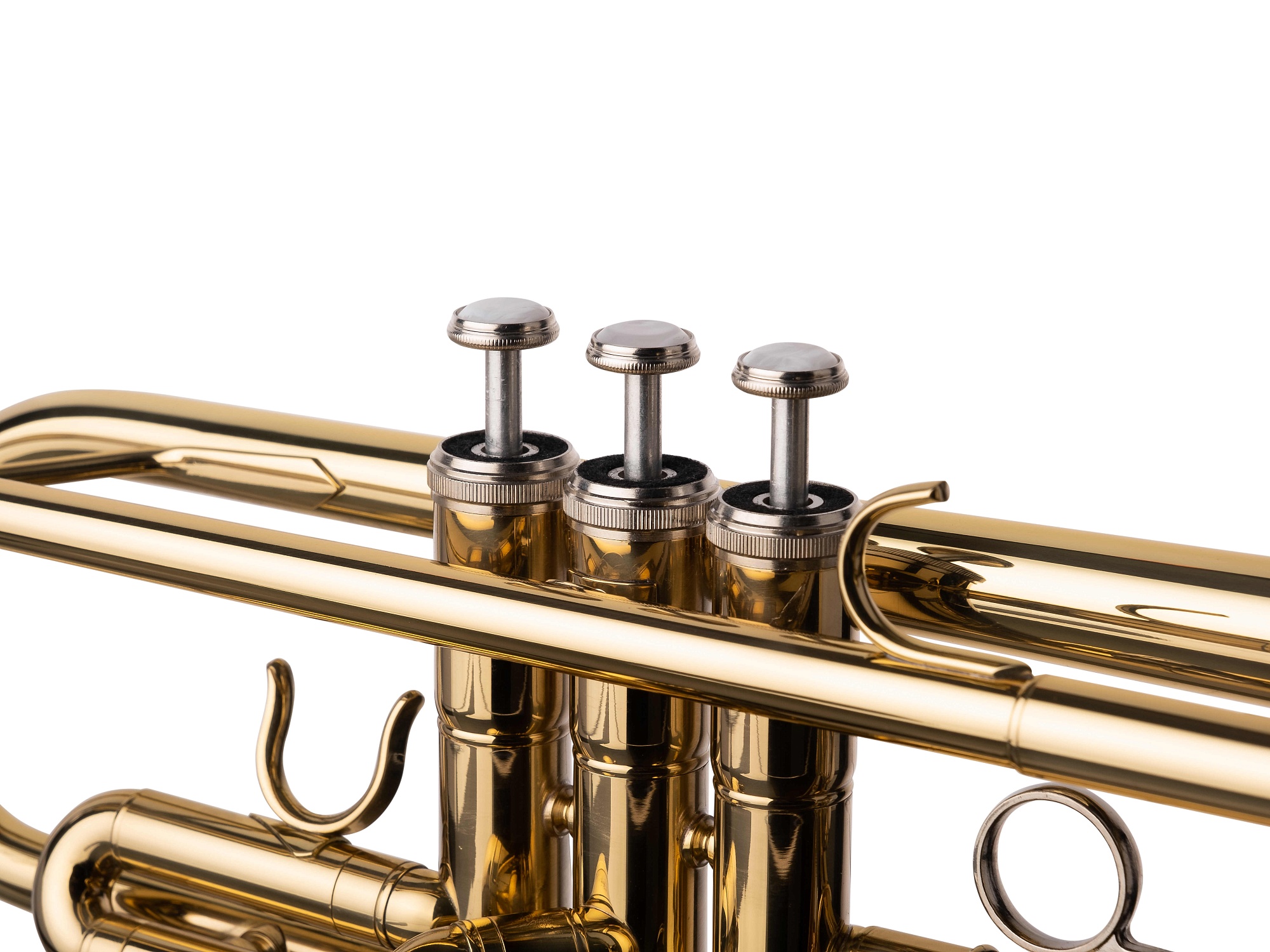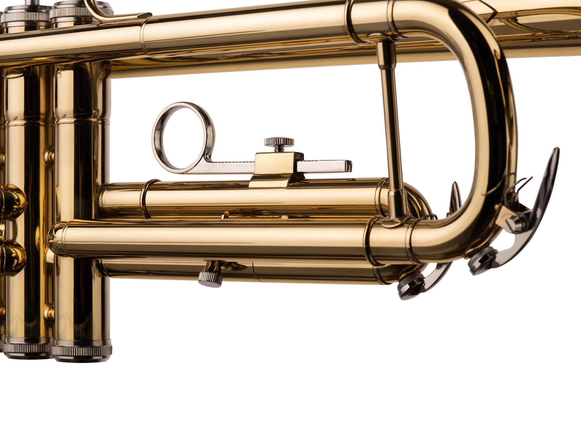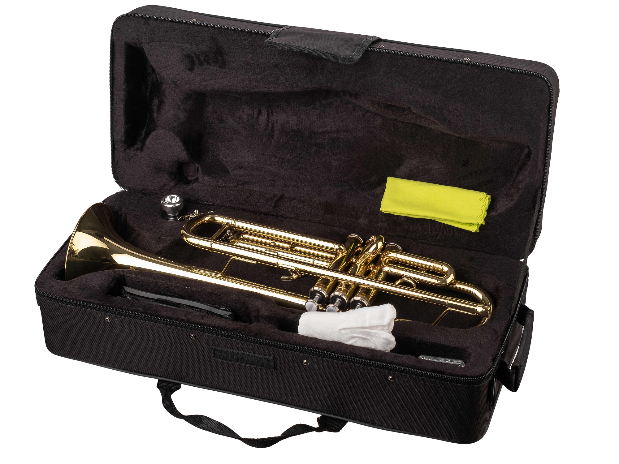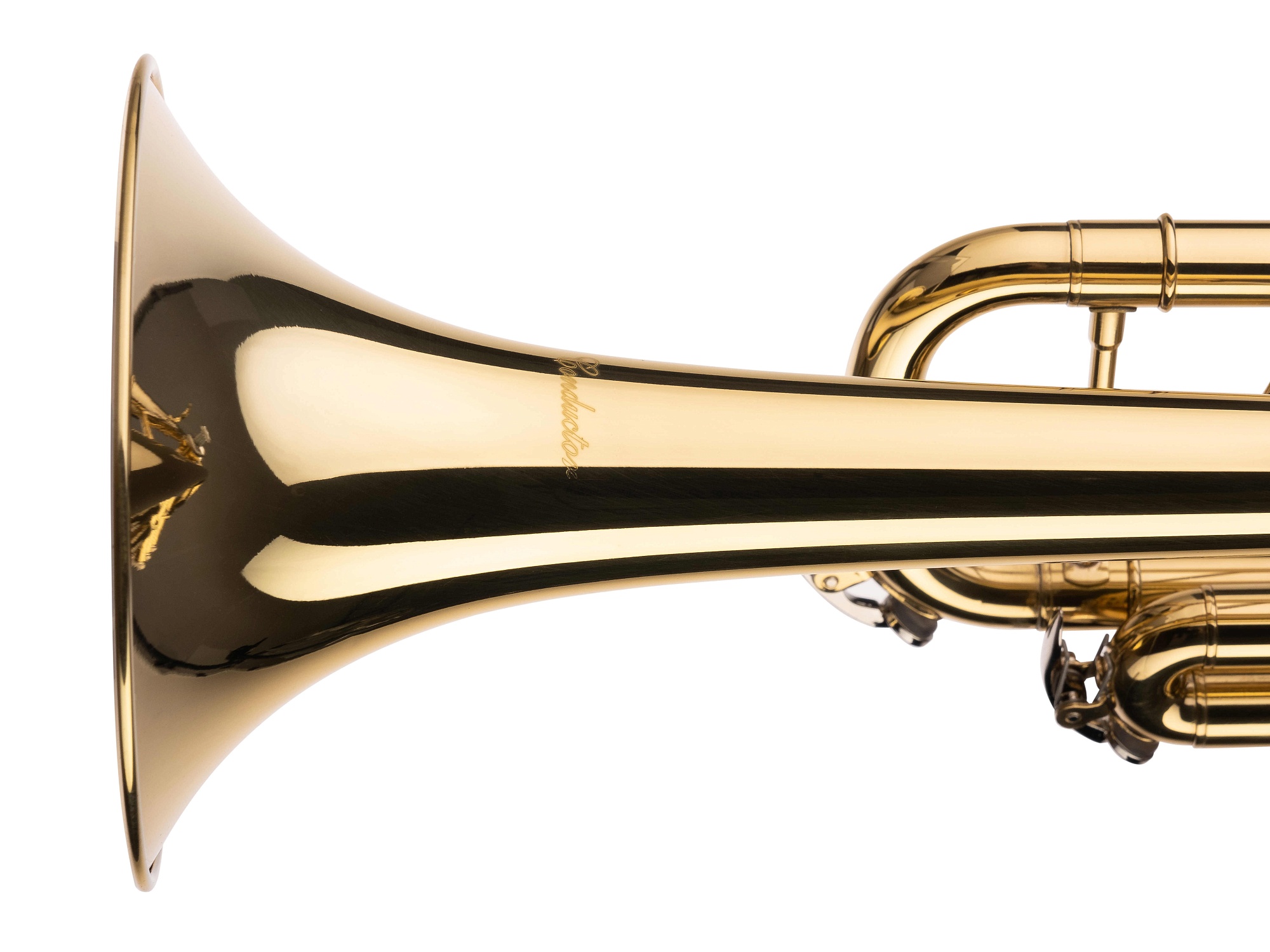 FLT-TR-3 Труба Conductor помповая, студенческая модель, цвет "золото", мензура 11,65мм, диаметр раструба 123мм, прозрачнй лак, крюк для подстройки на первом кроне, с одной стойкой на центральном кроне, мундштук и футляр в комплекте.
