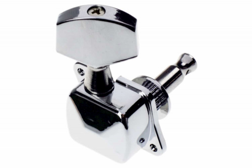 Левый одиночный колок вертикальной установки для акустической гитары хромированный с хромированной обычной ручкой, закрытого типа.