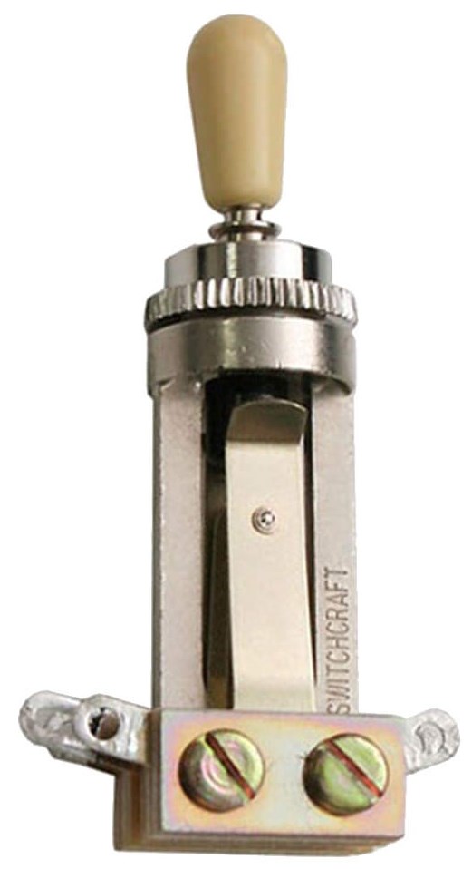 DIMARZIO SWITCHCRAFT TOGGLE SWITCH STRAIGHT EP1101 - это прямой 3-позиционный переключатель звукоснимателей тумблерного типа. Такой переключатель как правило устанавливают на гитары типа Les Paul и гитары с декой аналогичного типа. Тумблер может быть использован с любым типом звукоснимателей, как синглов, так и хамбакеров. Его можно устанавливать на электрогитары активной и пассивной электроникой.