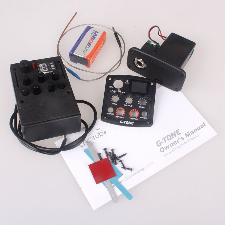 Трехполосный эквалайзер со встроенным хроматическим тюнером высокой точности. Эффекты хорус, фэйзер, делэй, реверб и расширения (Wide). Размеры видимой части эквалайзера составляют лишь 52х54х4мм. Оснащен функцией определения уровня заряда батареи.