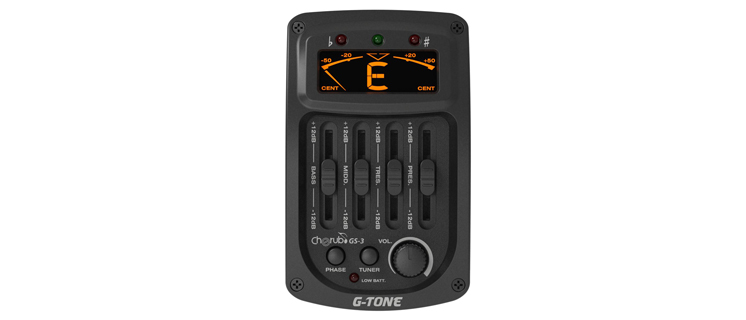 GS-3 Эквалайзер для акустической гитары, врезной, 4-х полосный, с инверсией фазы и тюнером, Cherub