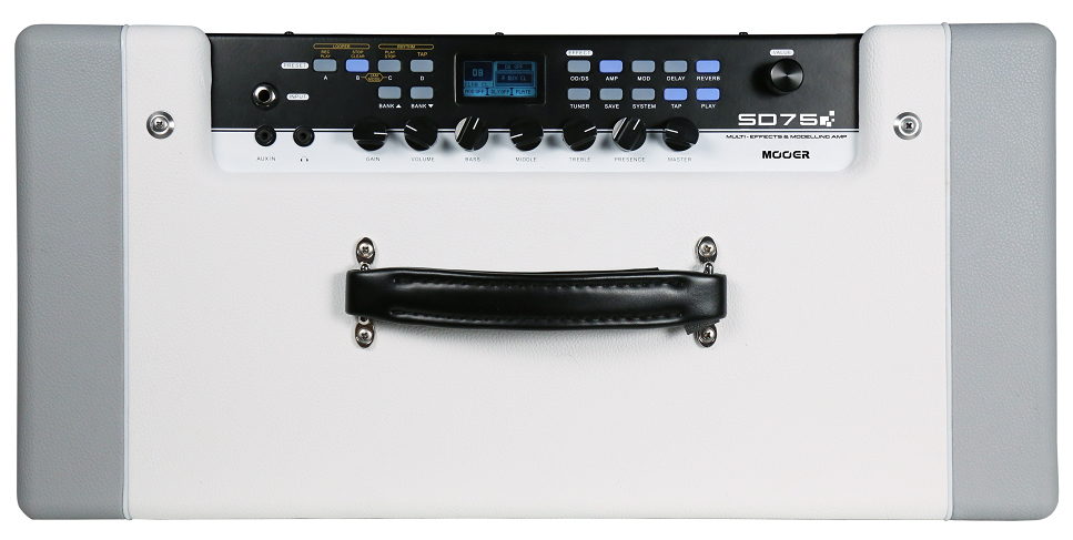Комбо SD75 основан на цифровых технологиях, зарекомендовавших себя в популярных преампах MOOER и новой технологии эмуляции ламповой секции мощности на транзисторной схеме. Секция JAM содержит в себе все необходимое для креативности и сольного музицирования: драм-машину, синхронизируемый с ней лупер и аудио вход Bluetooh. • Мощность: 35Вт • Динамик 1х12” 100Вт • 25 Моделей усилителей • 28 эффектов (DS/OD:8; MOD:9; DELAY:5; REVERB:6 ) • Лупер 150 сек • Пресетов: 40 • Последовательная петля эффектов • Выход на наушники 1/8” • Вход AUX IN 1/8” • Выход на динамики 8-16Ом • Выход XLR с эмуляцией кабинета • Вход Bluetooh Audio • Порт USB для обновления прошивки • Габариты: 570мм x 275мм x 465мм • Вес: 16кг
