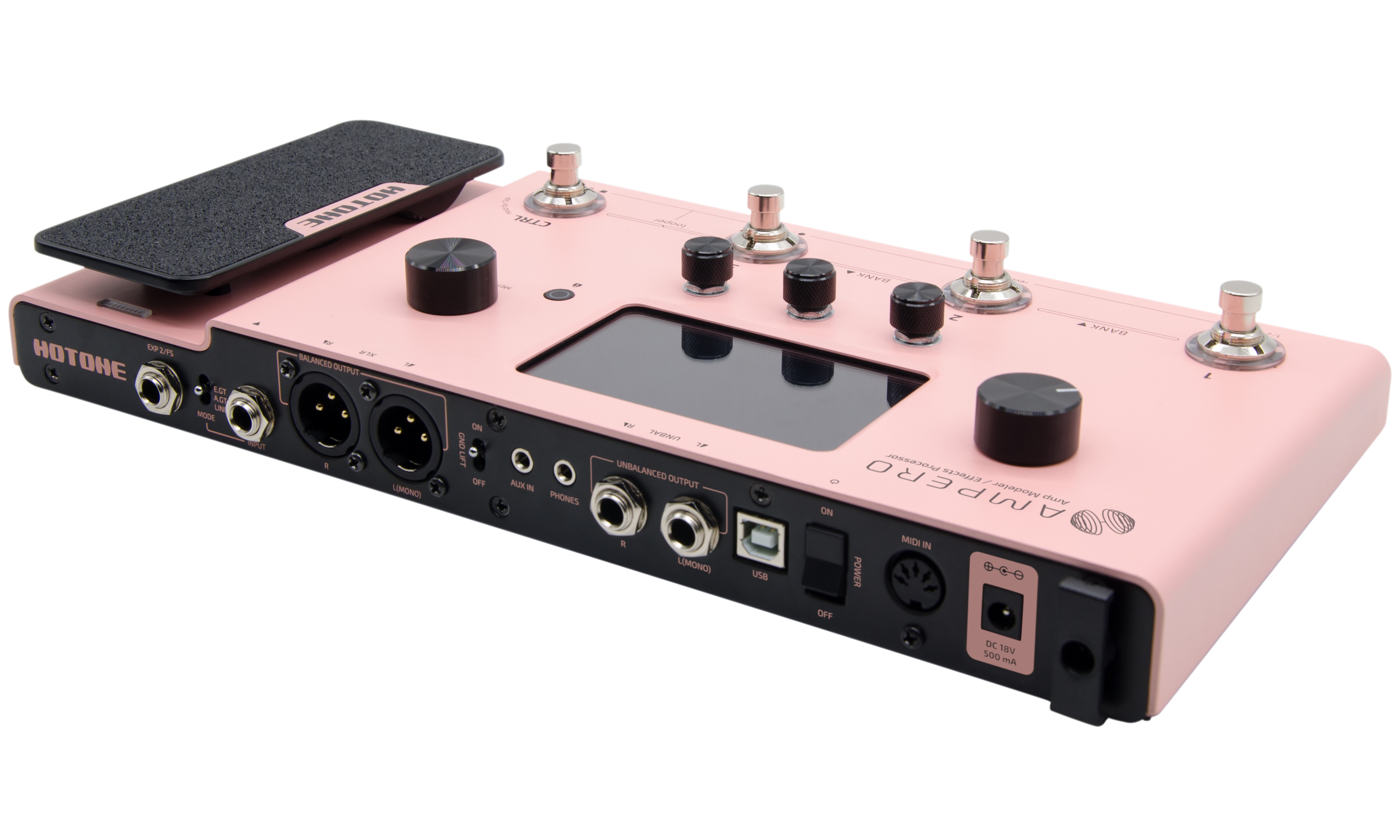Hotone Ampero чрезвычайно мощный напольный процессор эффектов, который приятно удивляет своей компактностью и удобством работы с 4-дюймовым сенсорным экраном. Основанная на процессоре SHARC Dual DSP, комбинация схем Comprehensive Dynamic Circuit Modeling High Definition (CDCM HD) и Field Impulse Response Enhancement (F.I.R.E.) обеспечивает безукоризненную естественность звука электрогитар, бас-гитар, акустических инструментов, клавишных и синтезаторов. Встроенный лупер и драм-машина также встроены в устройство. В дополнение к несбалансированным и сбалансированным стереовыходам, Hotone Ampero имеет USB-порт для аудио-интерфейса или обновления прошивки и MIDI-вход. Дополняется Hotone Ampero еще и педалью экспрессии, входом Aux-In и джеком для наушников.
