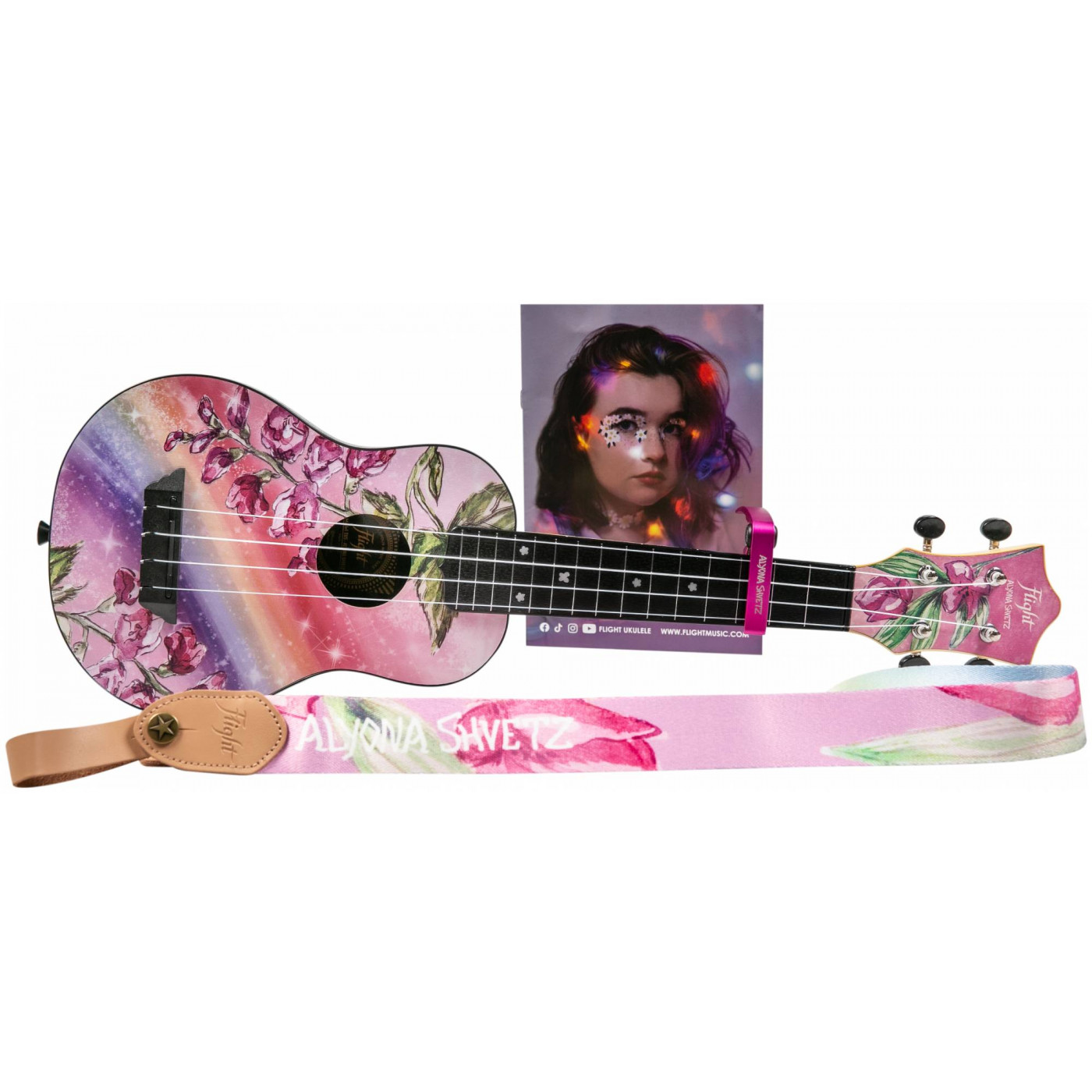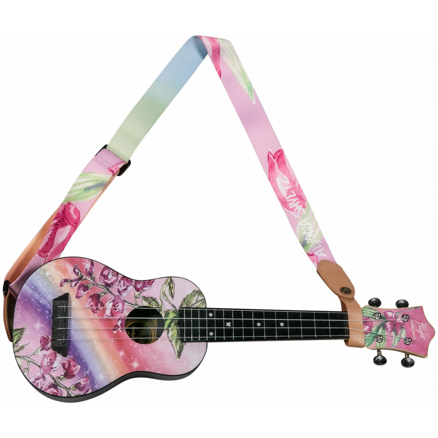 Ремень для укулеле с подписью Алены Швец выполнен в пастельно-розовых тонах и идеально подходит к подписной трэвел-укулеле от Алены Швец Flight TUS Alyona Shvetz, однако он отлично смотрится и с другими укулеле.