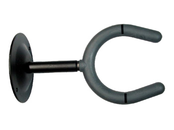 Гитарный настенный держатель GS 402 с зауженным концом удерживающей вилки выполнен из металла с мягким резиновым покрытием.