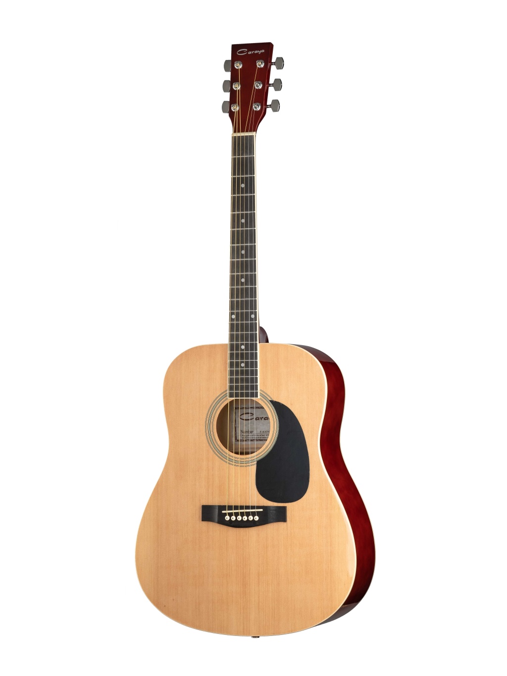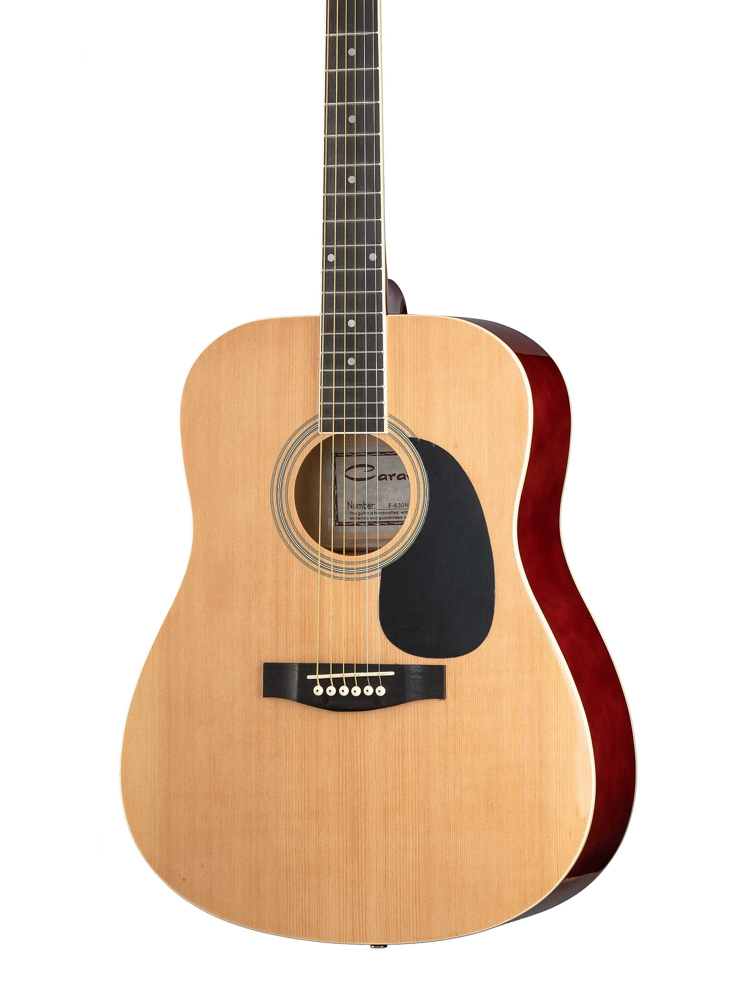 Caraya F630-N - акустическая гитара. Ее корпус формы "дредноут" генерирует громкий, пробивной звук, который получает ясность и открытость тона благодаря ели, использованной для верхней деки и дополняется липой, которая присутствует в обечайке и нижней деке. Среди особенностей инструмента можно выделить естественную отделку и резной черный пикгард. Гриф с кленовой накладкой оснащен 20 ладами. Внешний вид инструмента дополняется блестящей хромированной фурнитурой.