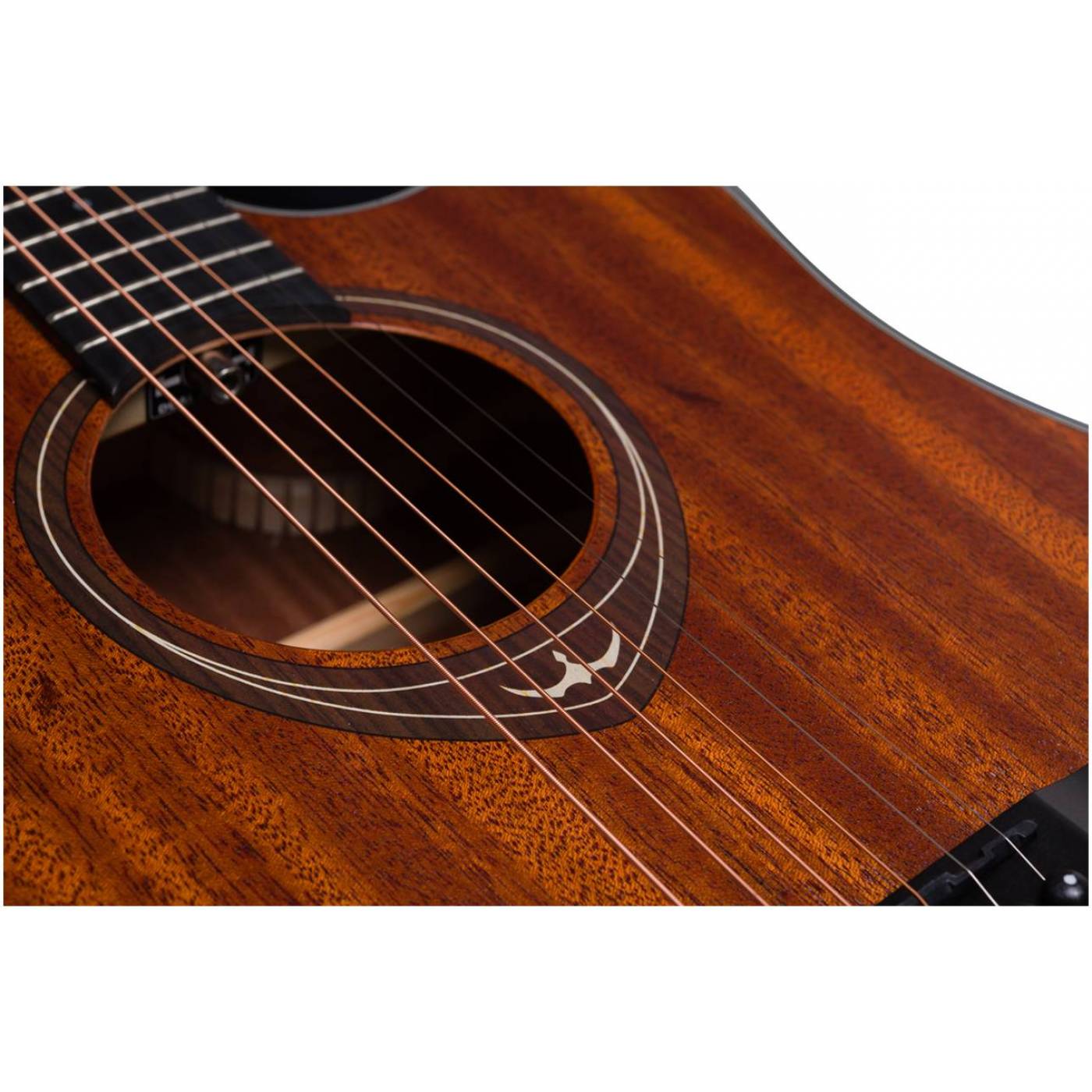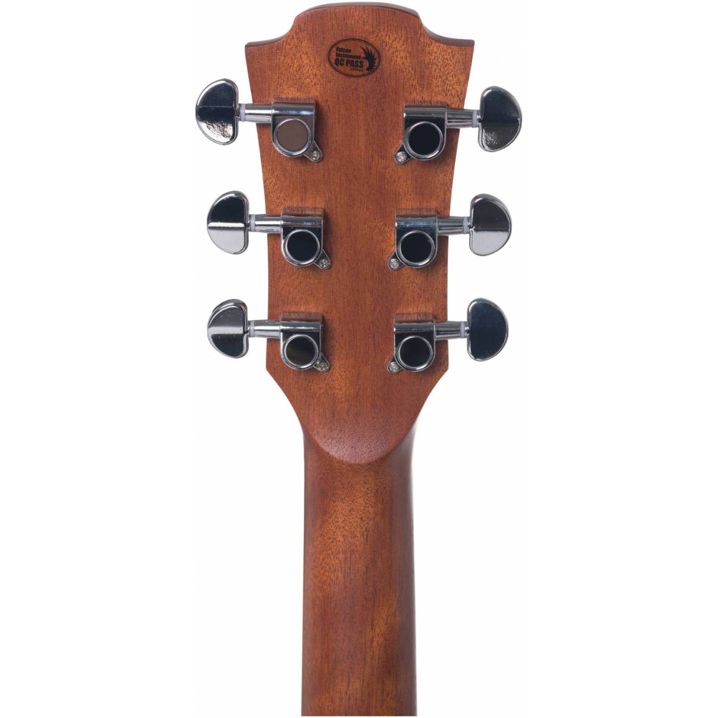 Верхняя и нижняя дека гитары изготовлены из сапеле, которое наполняет звук своей теплотой и певучестью. Натуральный цвет инструмента с прозрачным матовым лаком хорошо передает естественную красоту дерева, гармонично сочетаясь с любой окружающей обстановкой.