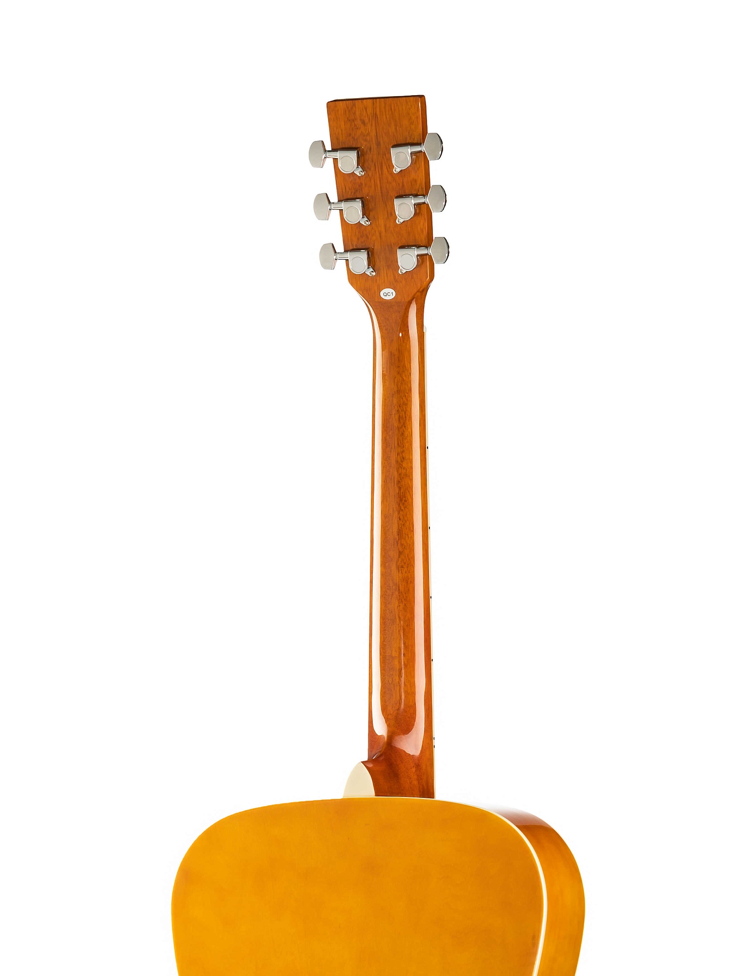 LF-4110-N Акустическая 6-струнная гитара 41". Верхняя дека - ламинат ели, задняя дека и обечайки - ламинат липы, гриф - катальпа, накладка грифа - палисандр, бридж - палисандр, колковая механика - хромированная, окантовка - пластик, цвет - натуральный. HOMAGE