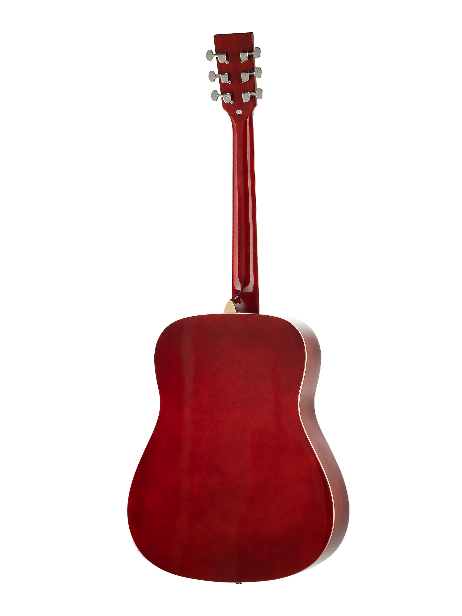 LF-4111-R Акустическая 6-струнная гитара 41". Верхняя дека - ламинат ели, задняя дека и обечайки - ламинат липы, гриф - катальпа, накладка грифа - палисандр, бридж - палисандр, колковая механика - хромированная, окантовка - пятислойный пластик, цвет - красный. HOMAGE