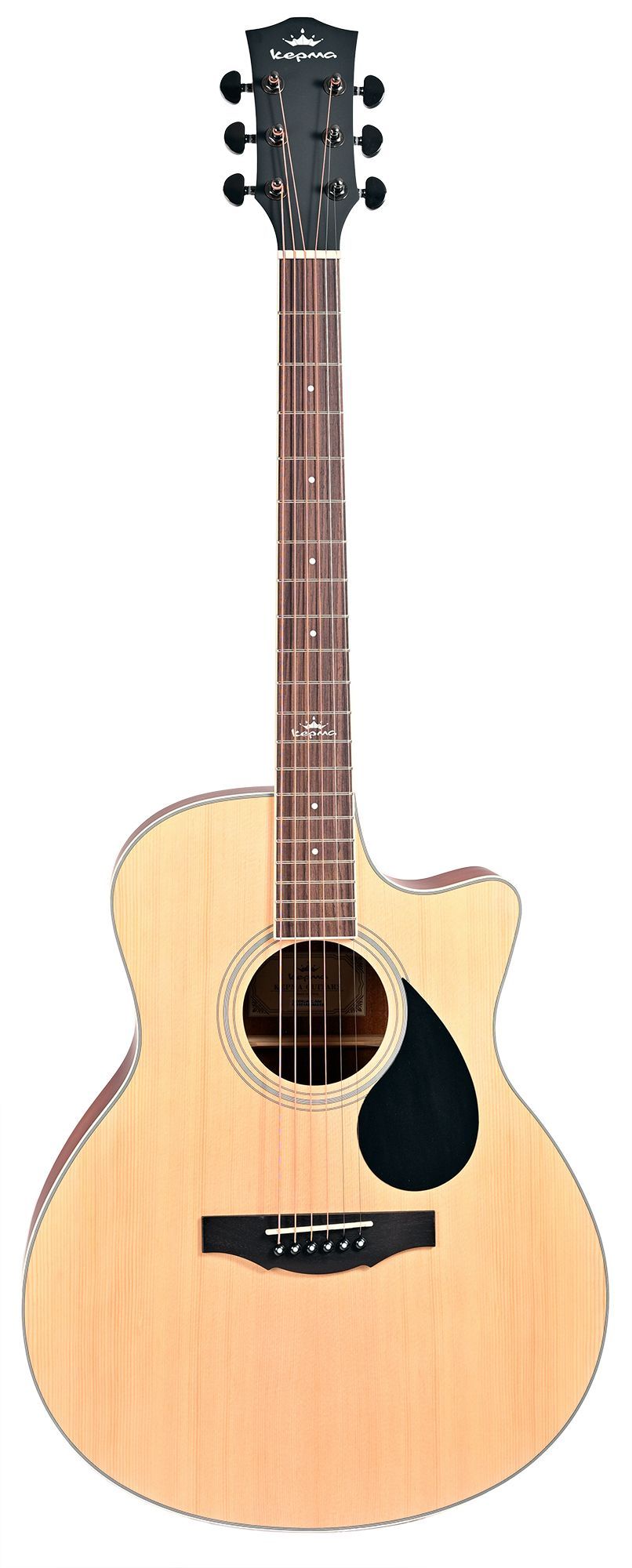 Акустическая гитара с корпусом Grand Auditorium, обеспечивающая оригинальный и сбалансированный акустический голос с акцентом на средние и высокие частоты. Инструмент хорошо подходит для игры пальцами, фингерстайла, а также для игры медиатором и боем средней силы. Верхняя дека гитары Kepma A1C сделана из ламината ели, делая звук ярким и звонким. Нижняя дека и обечайки выполнены из ламината махагони, который привносит в звук теплоту и объем. Низкая постановка струн и тонкий гриф предлагают комфорт при игре, а вырез на корпусе обеспечивает удобный доступ к верхним ладам для исполнения пассажей и мелодий.