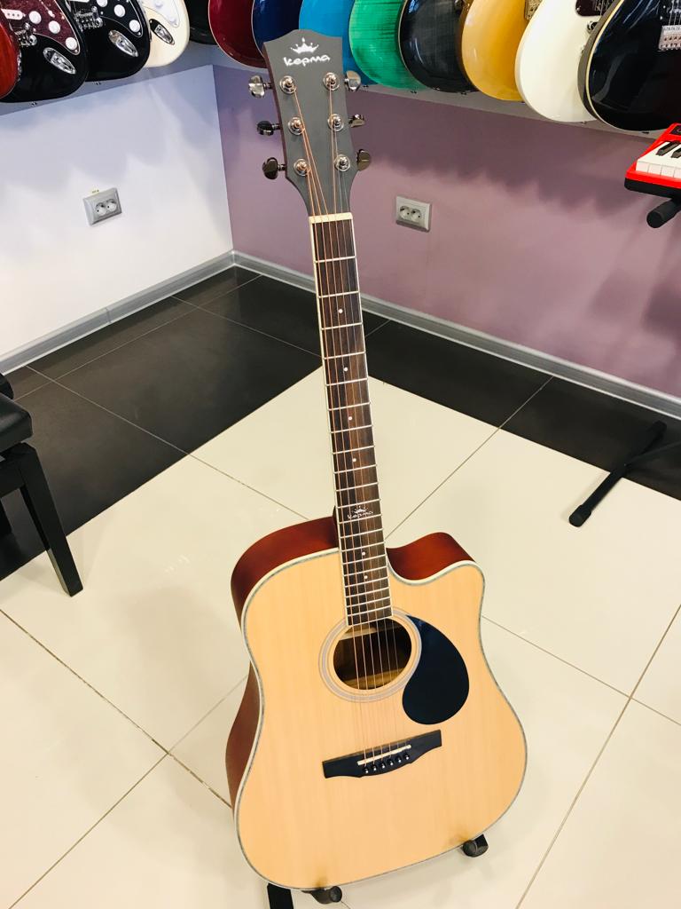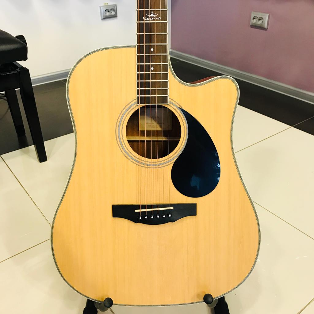 Правильный прогиб грифа, удобная высота струн. Kepma D1C дает очень неплохой звук для корпуса из ламината. Кроме того, ламинат гораздо надежнее массива. Гитара из ламината не так боится погодных условий, ей не требуется дополнительное увлажнение. Это возможность для начинающего гитариста заниматься на хорошем инструменте за небольшую цену и не заботиться о таких ньюансах, как правильный климат.
