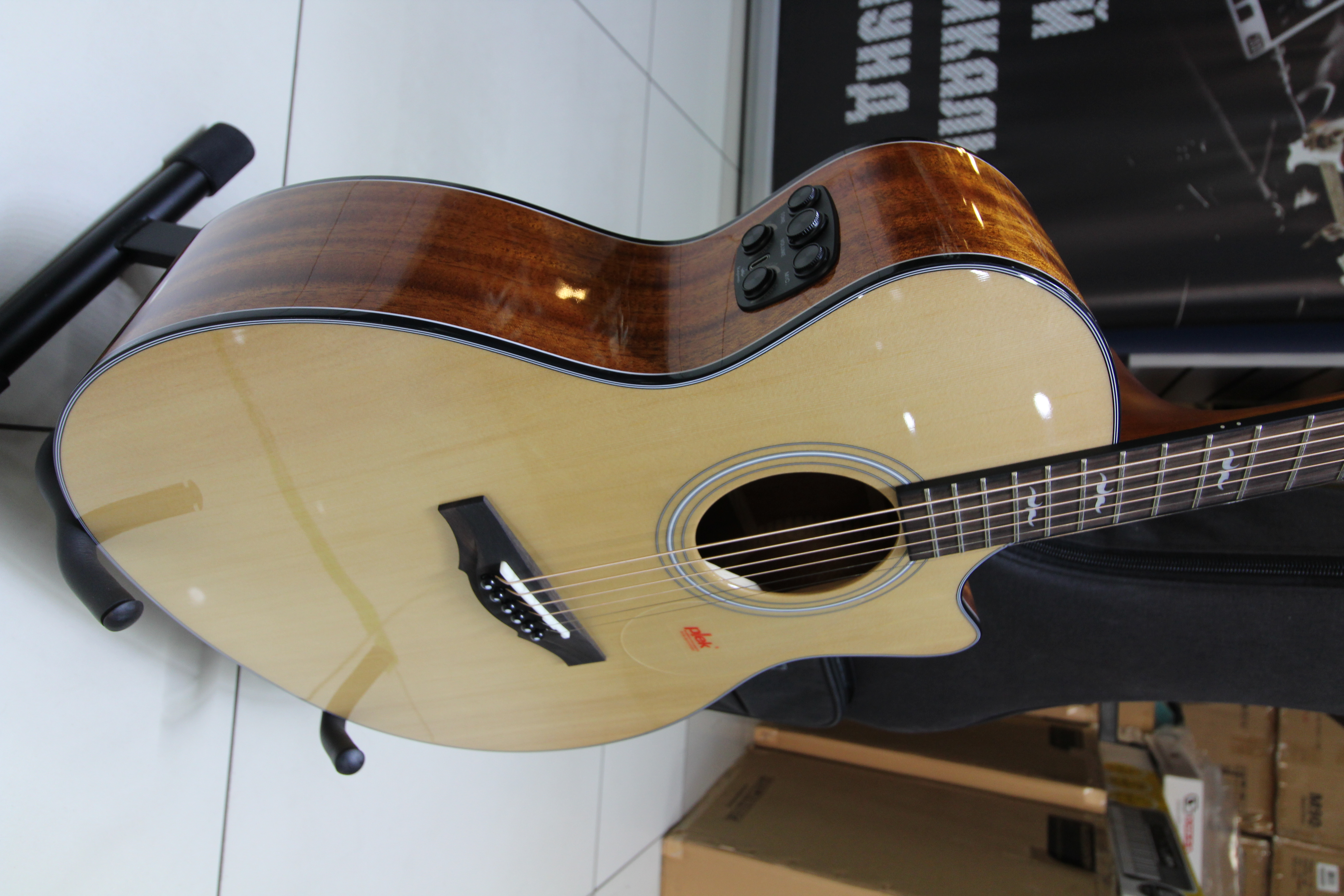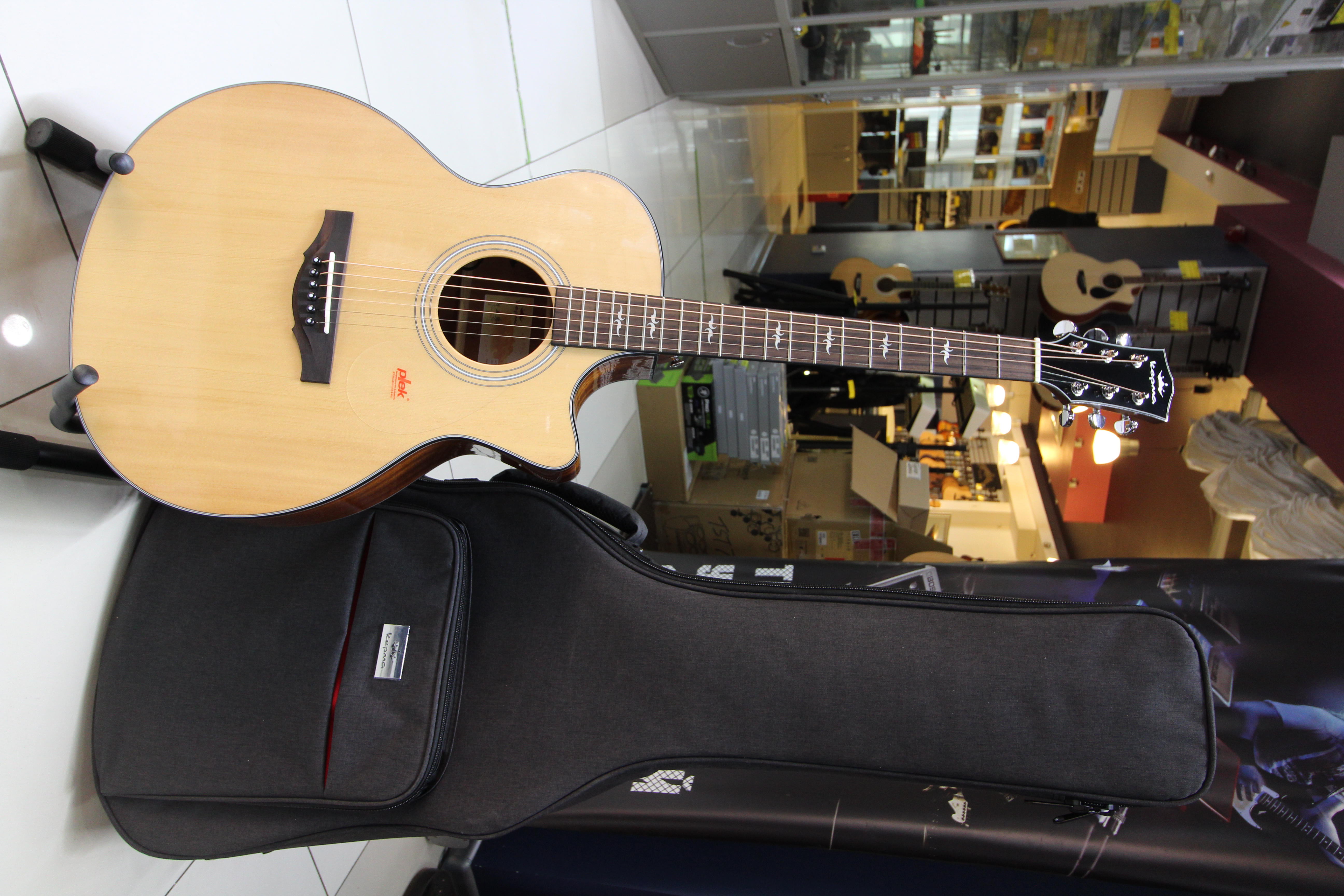 Форма корпуса — гранд аудиториум. По размером он где-то посередине между дредноутом и парлором. Благодаря этому, гитара очень универсальна в применении. Она обладает богатым на обертона звуком. Все благодаря материалам высокого качества. Верхняя дека – из массива ситхинской ели, нижняя дека и обечайки — красное дерево.