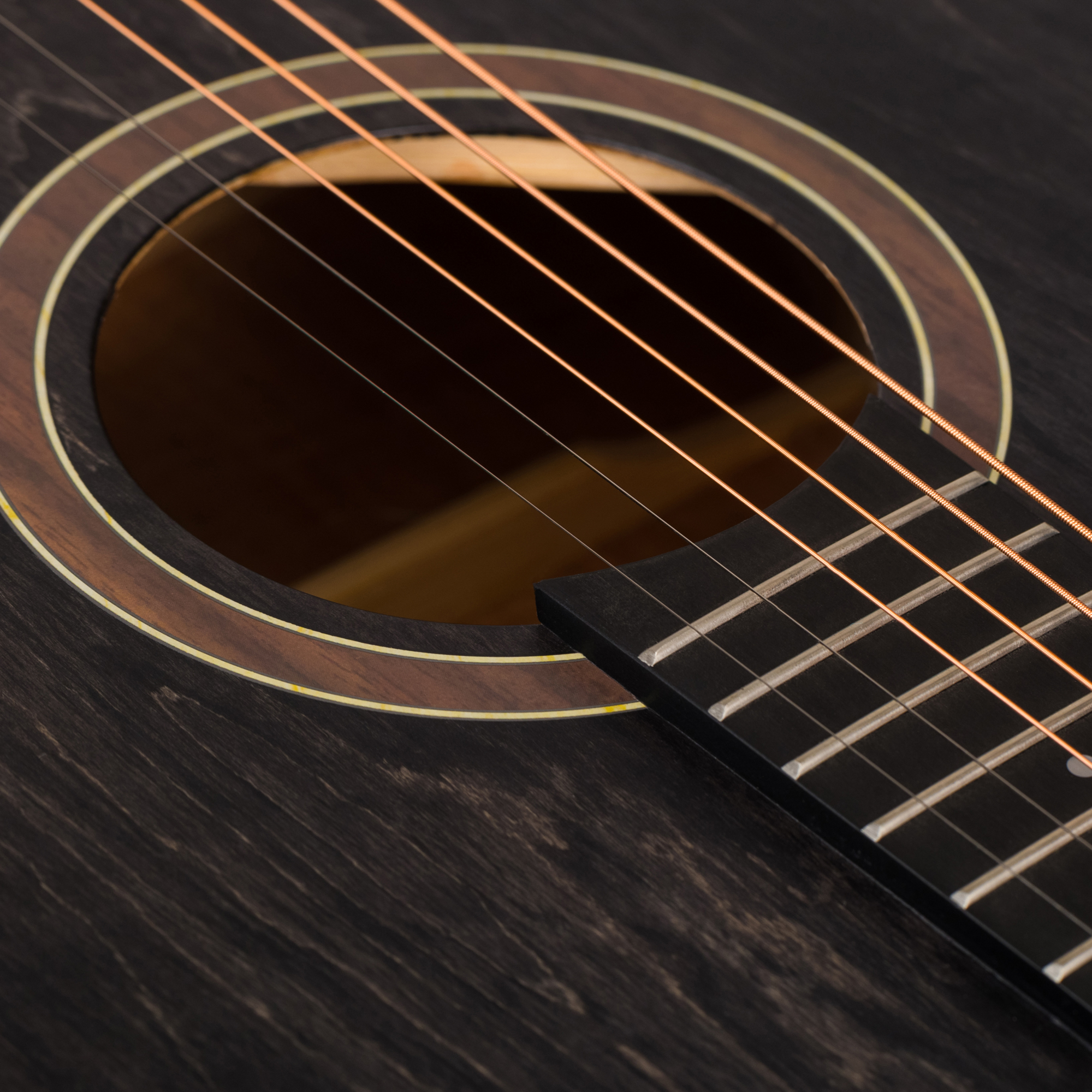 Акустическая гитара. Форма корпуса Dreadnought. Цвет королевский коричневый. Матовое покрытие. Верхняя дека из агатиса. Нижняя дека и обечайка из сапеле. Гриф из красного дерева. Анкерный стержень. Накладка на гриф из древесно-полимерного композита. Закрытые колки.