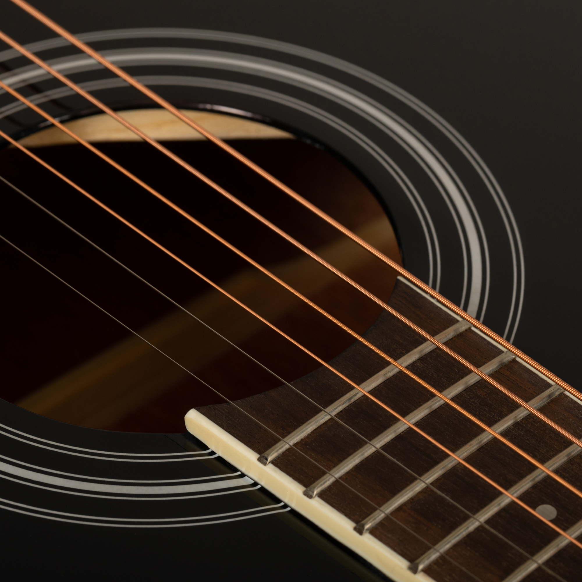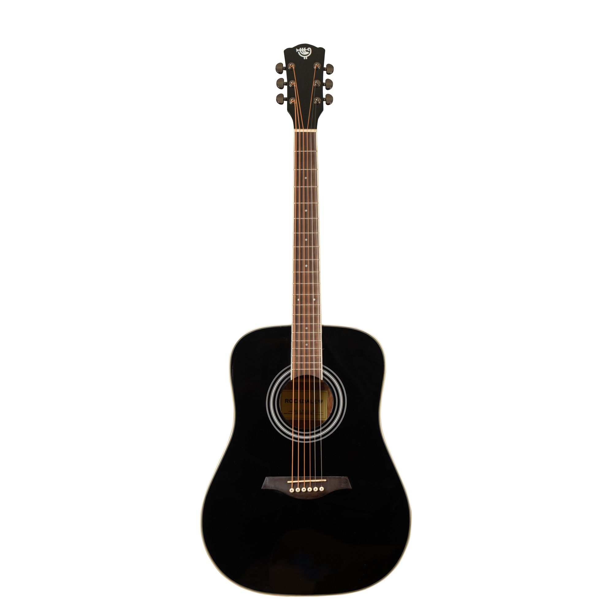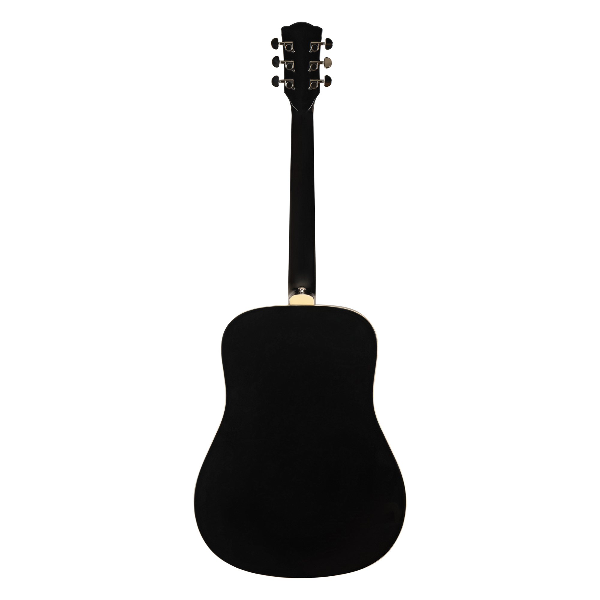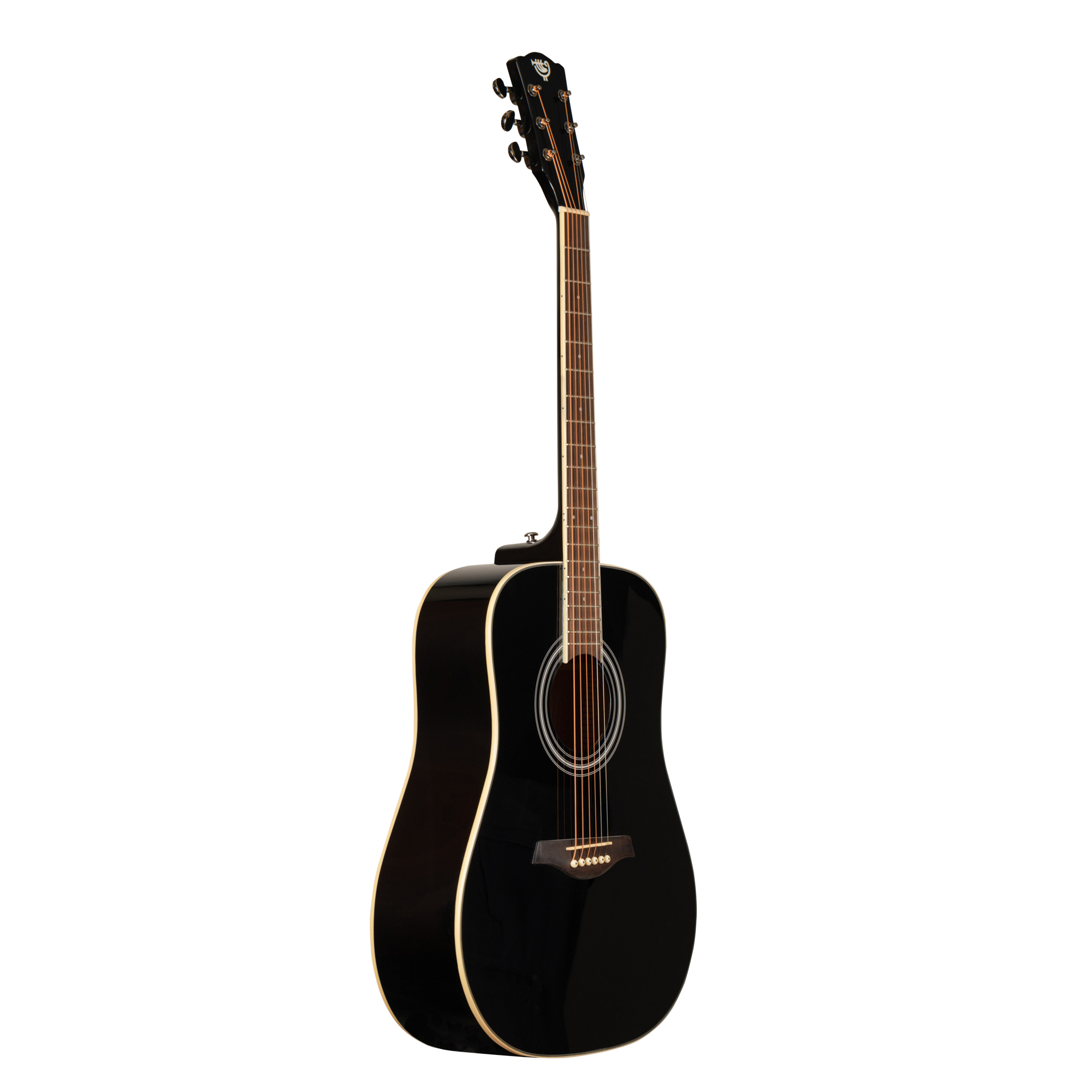 ROCKDALE Aurora D6 Gloss BK акустическая гитара. Форма корпуса Dreadnought. Цвет черный. Глянцевое покрытие. Верхняя дека из ели. Нижняя дека и обечайка из махагони. Гриф из красного дерева. Анкерный стержень. Накладка на гриф из палисандра. Закрытые колки.
