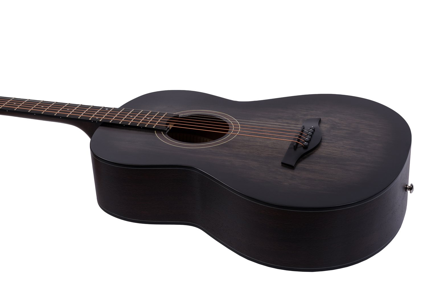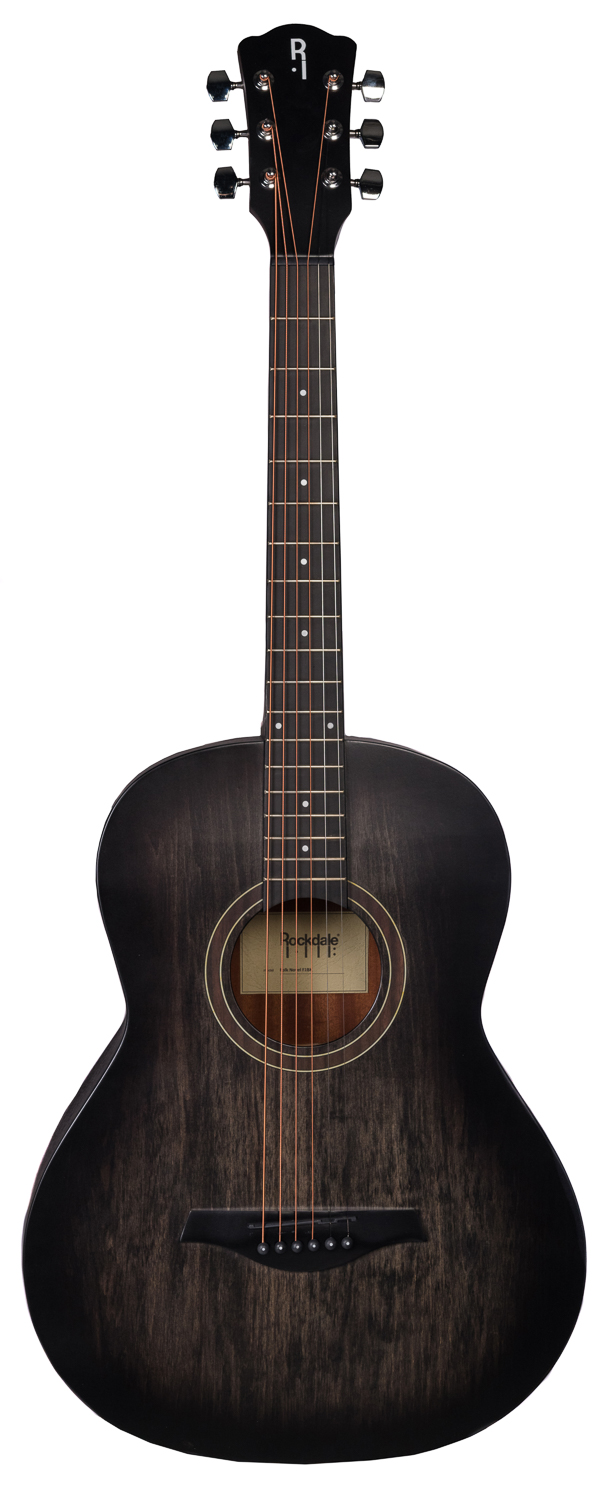 ROCKDALE Folk Novel F1BK акустическая гитара. Форма корпуса Folk. Цвет полупрозрачный черный. Матовое покрытие. Верхняя дека из агатиса. Нижняя дека и обечайка из сапеле. Гриф из красного дерева. Анкерный стержень. Накладка на гриф из двревесно-полимерного композита. Закрытые колки.