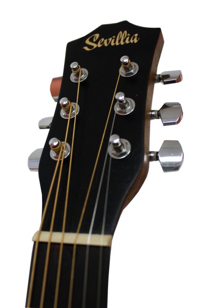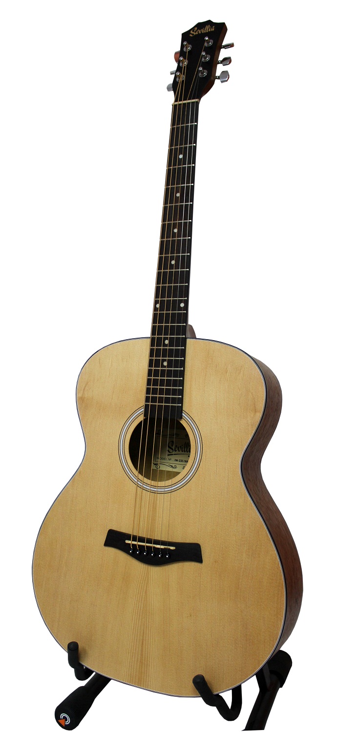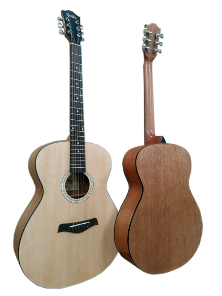 Корпус выполнен из ели, задняя и боковые стороны - меранти, гриф - нато, накладка - палисандр.