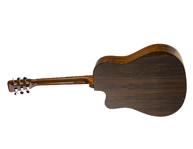 Акустическая гитара, цвет натуральный глянцевый, форма – дредноут с вырезом, верхняя дека - ель, нижняя дека и обечайка - овангкол, гриф - махагони, накладка грифа - палисандр, бридж - палисандр, 20 ладов, порожек – ABS-пластик, колки - Starsun литые, фурнитура - никель