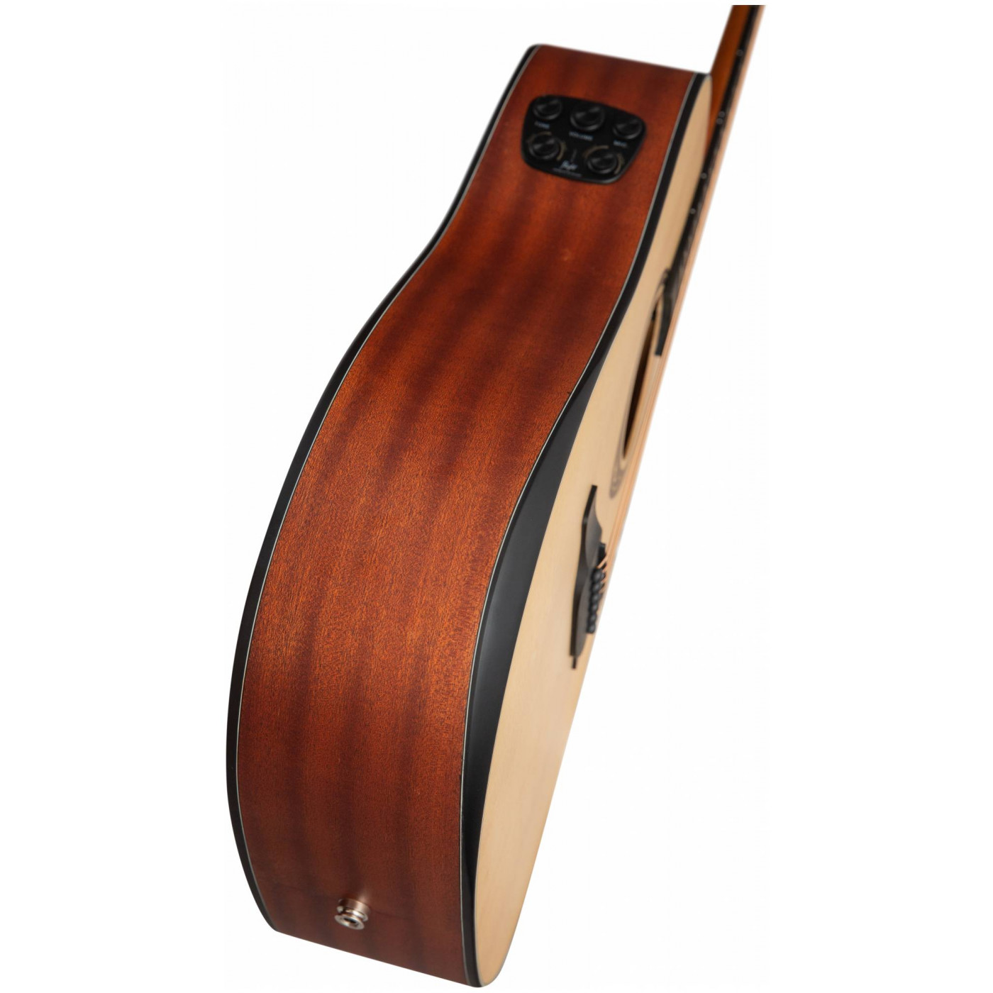 FLIGHT AD-555 NA SOUNDWAVE совместила в себе прекрасные звуковые качества и новейшие разработки. Верхняя дека этой гитары выполнена из массива ситхинской ели - эта порода древесины особенно ценится в производстве музыкальных инструментов за её однородную структуру, которая обеспечивает хороший резонанс и глубокий, прозрачный звук. Корпус сделан из сапеле. Тонкий матовый лак позволяет дереву лучше «дышать» и раскрывает все нюансы и естественную красоту звучания инструмента. Удобный скос под правую руку (armrest) из черного дерева сделает игру на гитаре еще более комфортной.