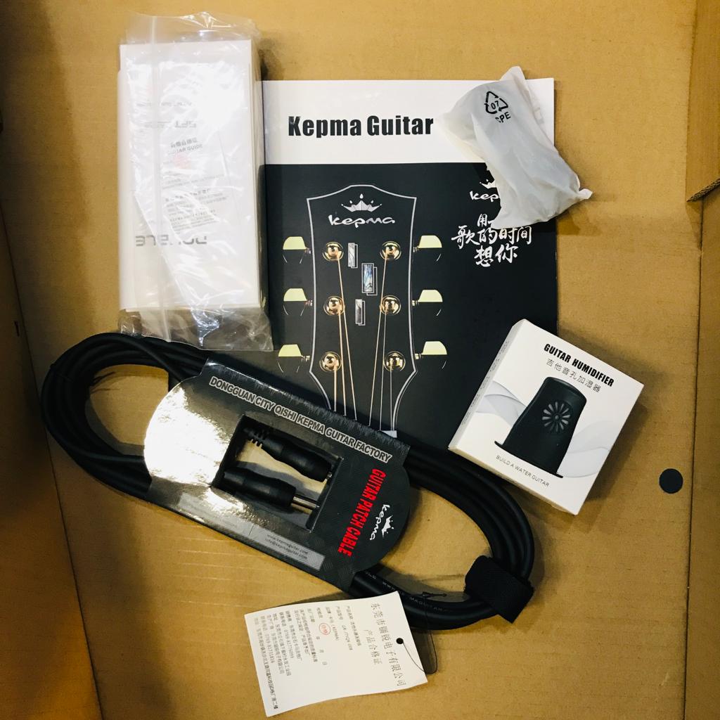Гитара начинает линейку топовых у Kepma: верхняя дека – из массива ситхинской ели, нижняя дека и обечайки – махагоновые, накладка грифа – тоже махагон. Благодаря этому инструмент обладает богатым обертонами звуком.