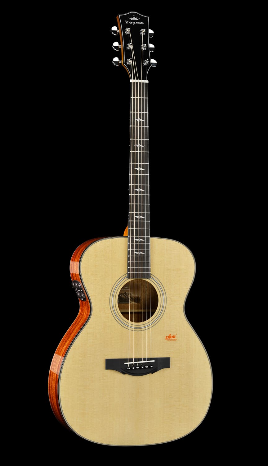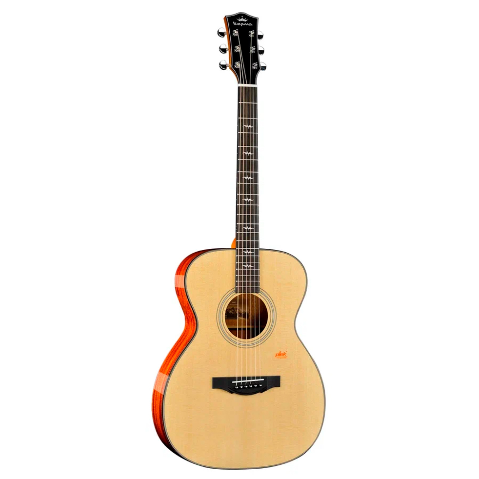 KEPMA F1E-OM Natural трансакустическая гитара, цвет натуральный, в комплекте чехол, форма - оркестра, верхняя дека - массив ситхинской ели, нижняя дека и обечайка - африканский махагони, гриф - махагони, накладка грифа - палисандр, бридж - палисандр, звукосниматель/преамп - Kepma K11 с пьезо-звукоснимателем и конденсаторным микрофоном (эффекты Reverb Hall, Reverb Room, Chorus, Delay + воспроизведение Bluetooth-аудио), 20 ладов, порожек - Bone, колки - Gotoh-style Plus литые, фурнитура - никель