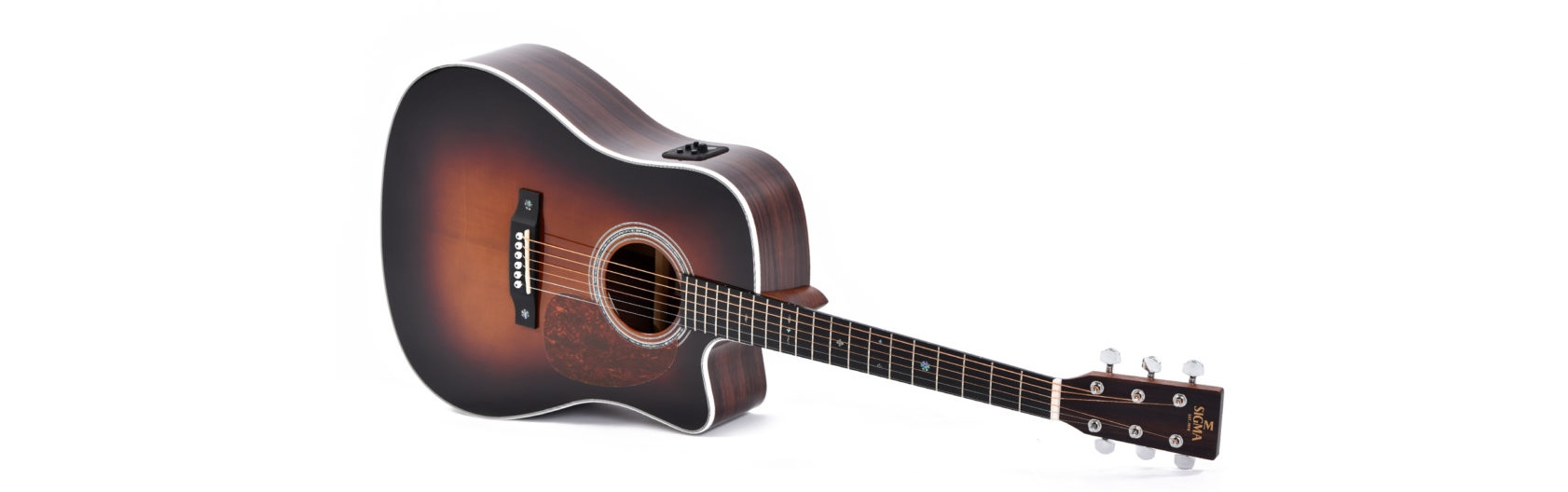 DTC-1E-SB - 6-ти струнная электроакустическая гитара с корпусом из дерева тилия, достаточно близкого по своим звуковыми характеристиками к индийскому палисандру, и активным преампом Sigma. Благодаря большому корпусу, инструмент звучит громко и объемно. Именно поэтому, акустическая гитара DTCE является прекрасным выбором для игры аккордами, а также инструмент звучит гармонично и читабельно в сочетании с вокалом.Корпус изготавливается из тилии, древесины достаточно плотной и тяжелой, поэтому нижние частоты звучат отчетливо и собрано, прекрасно подходит для игры ритмических партий. В сочетании с формой корпуса D-14, такой материал создает невероятно громкий, объемный и динамический звук.Гриф изготавливается из махагони, поэтому гитара Sigma DTC-1E-SB имеет хороший сустейн. Накладка грифа и струнодержатель изготавливаются из микарты, а верхний и нижний порожки из натуральной кости, что является редкостью для акустических гитар этой ценовой категории. Нижний порожек с компенсацией, благодаря чему, все ноты звучат