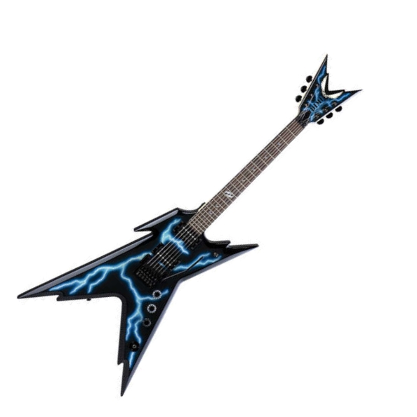 Dean RZR DB F LTNG- электрогитара из именной серии Dime Razorback DB Series. Корпус и том изготовлены из липы, гриф - клен с палисандровой накладкой. Крепление грифа к корпусу на болтах. На гитаре установлены колки гровер, бридж Floyd Rose Special и хамбакеры DMT Design. Цвет инструмента - графика "молния". Гитара поставляется в кейсе