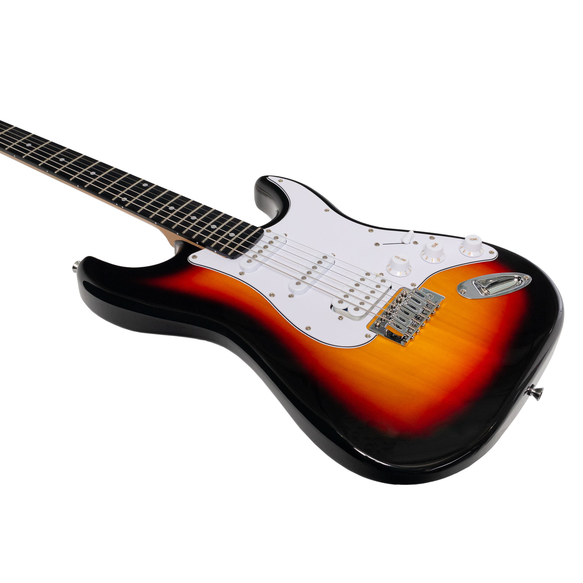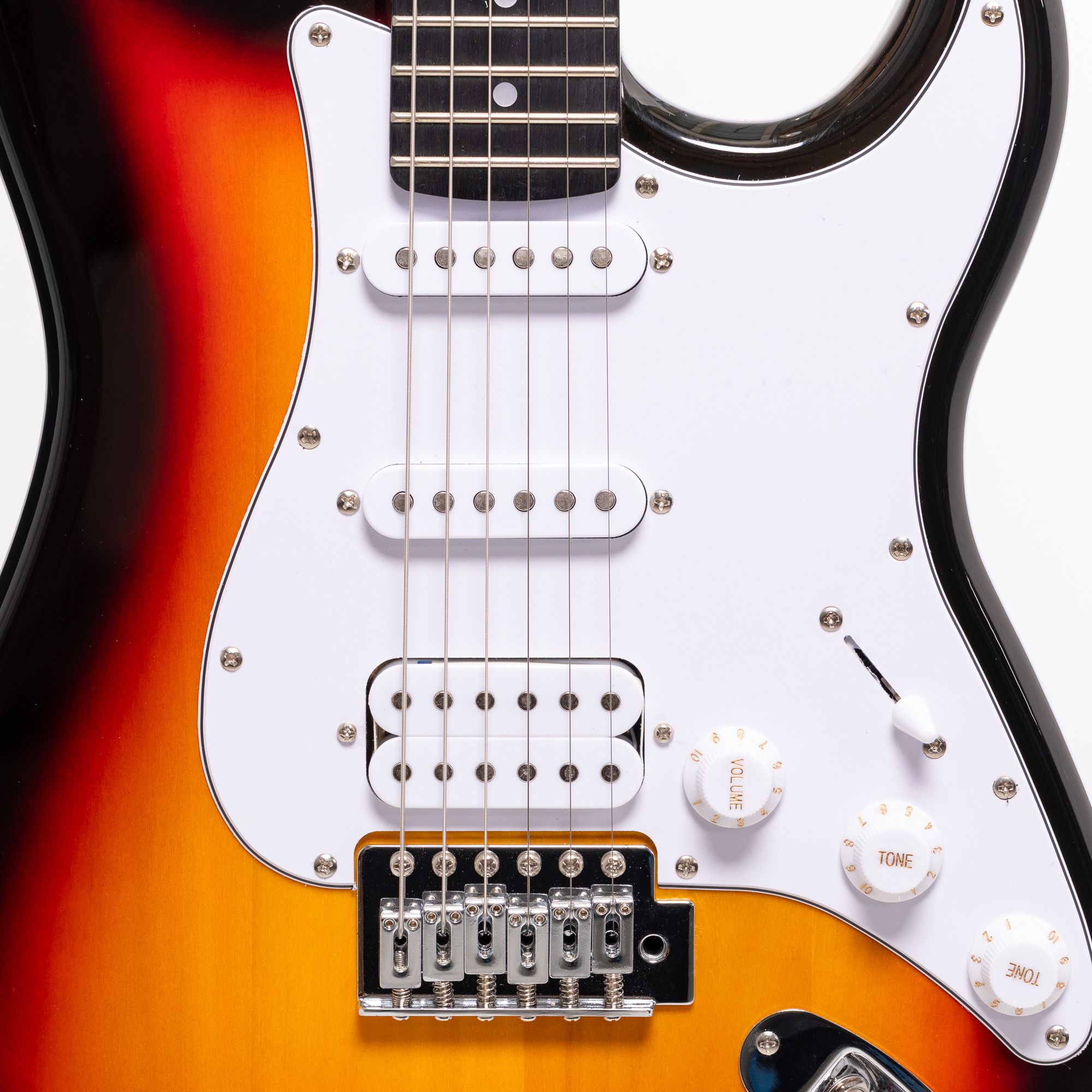 Электрогитара. Форма корпуса стратокастер. Цвет санберст. Глянцевое покрытие. Хромированная фурнитура. Корпус из тополя. Гриф из клена. 22 лада. Анкерный стержень. Накладка на гриф из древесно-полимерного композита. Бридж тремоло. Конфигурация звукоснимателей H-S-S. Управление звуком: громкость, 2 тона, 5-ти позиционный переключатель. Рекомендованный диаметр струн 10/46.