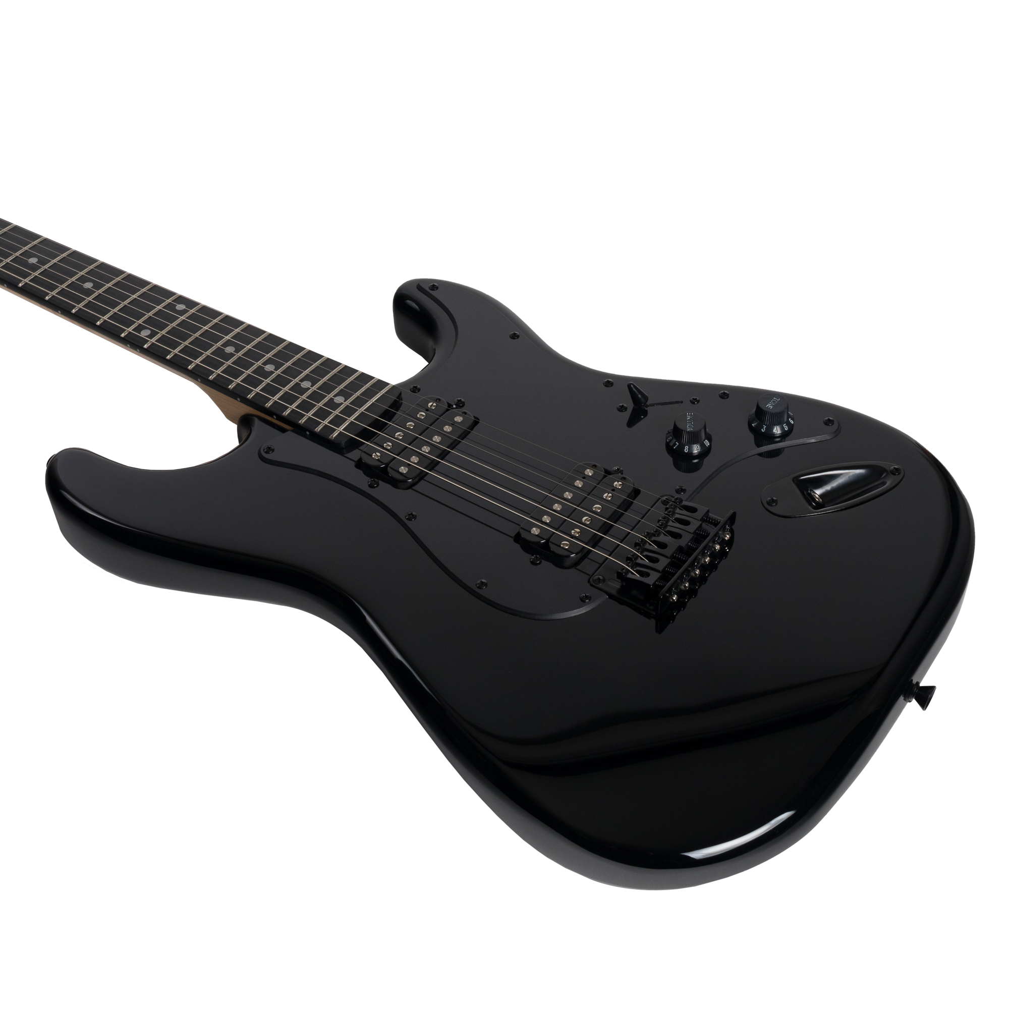 ROCKDALE Stars Plus HT HH Black электрогитара. Форма корпуса стратокастер. Цвет черный. Глянцевое покрытие. Черная фурнитура. Корпус из тополя. Гриф из клена. 22 лада. Анкерный стержень. Накладка на гриф из древесно-полимерного композита. Фиксированный бридж (hardtail). Конфигурация звукоснимателей H-H. магниты Alnico V. Управление звуком: громкость, тон, 3-х позиционный переключатель. Рекомендованный диаметр струн 10/46.