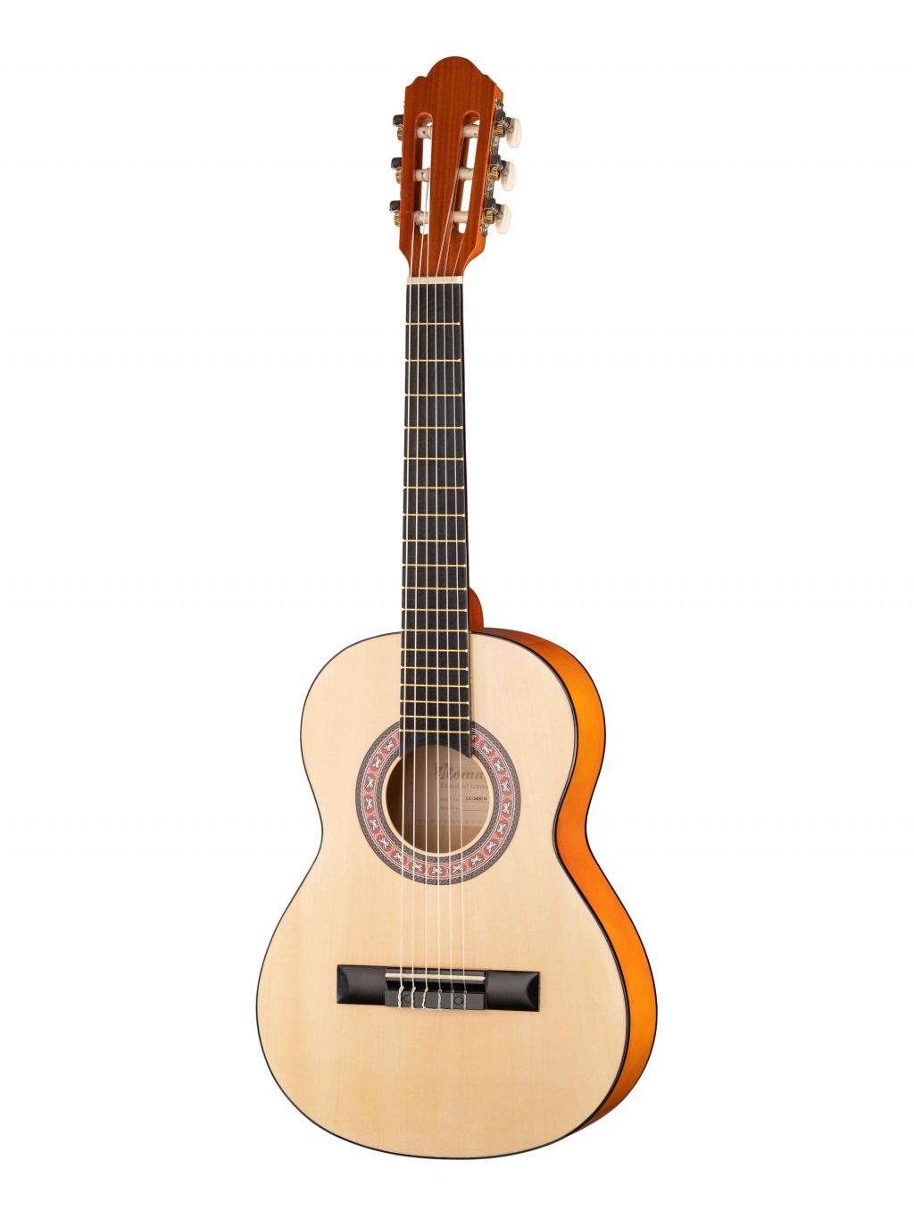 Верхняя дека - ламинат ели, задняя дека и обечайки - липа, гриф- клен, накладка грифа - фанера, бридж - клен, колковая механика - хромированная, окантовка - 5-слойная, цвет - натуральный. HOMAGE