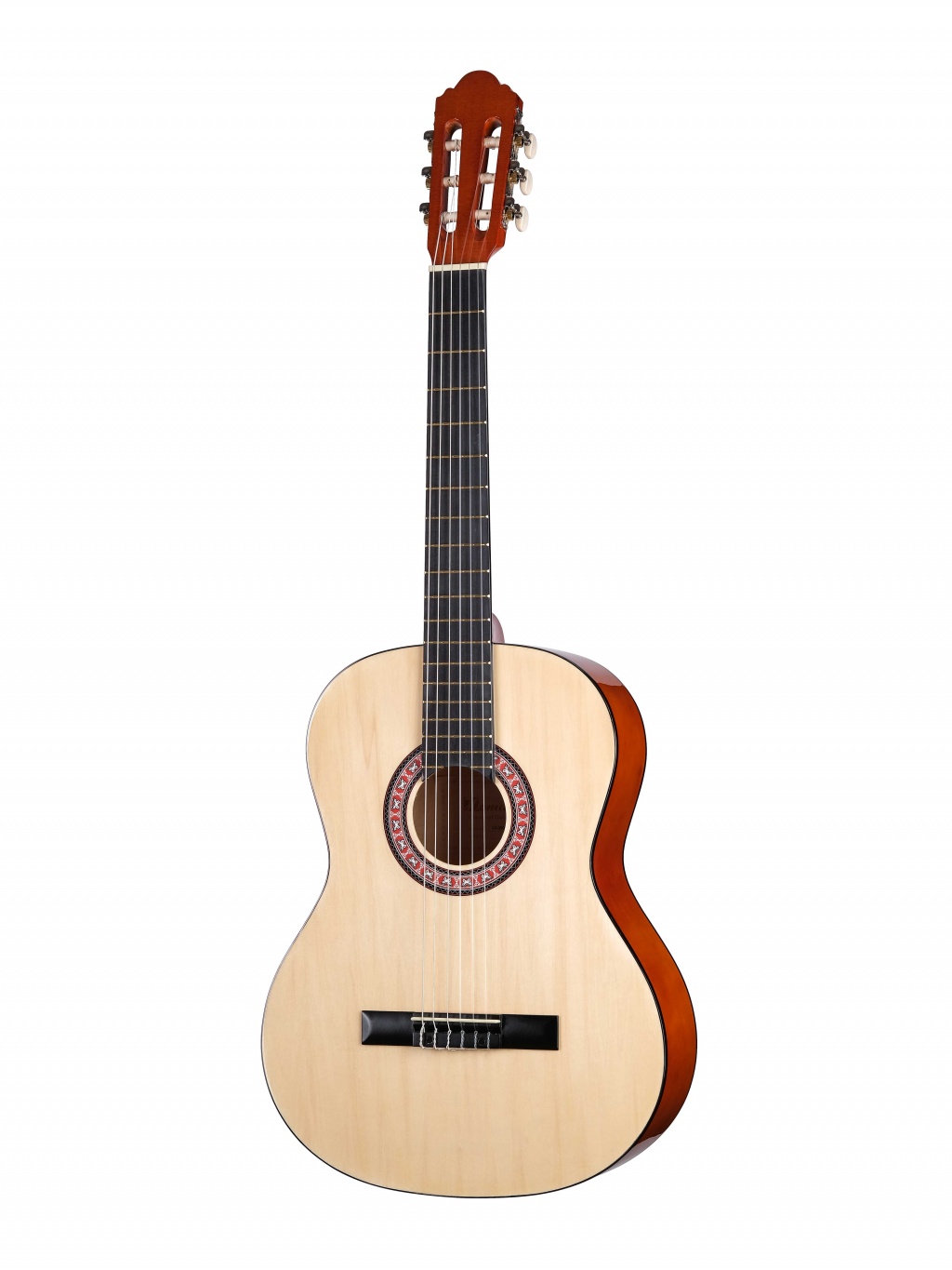 LC-3900-N Классическая 6-струнная гитара 39". Верхняя дека - ламинат ели, задняя дека и обечайки - липа, гриф- клен, накладка грифа - фанера, бридж - клен, колковая механика - хромированная, окантовка - 5-слойная, цвет - натуральный. HOMAGE