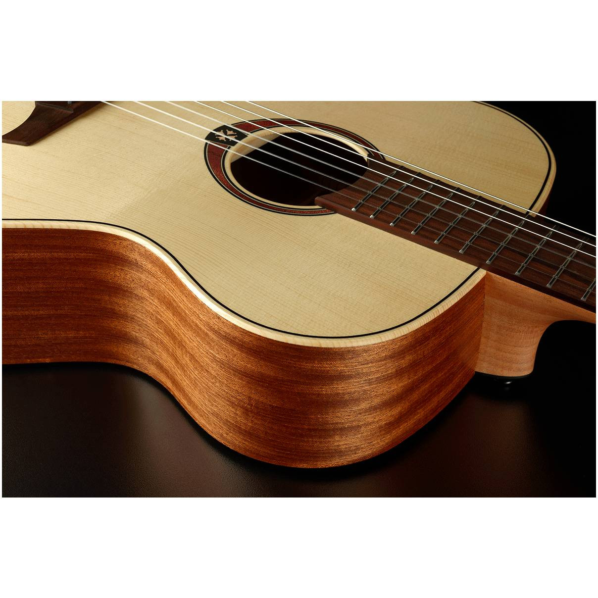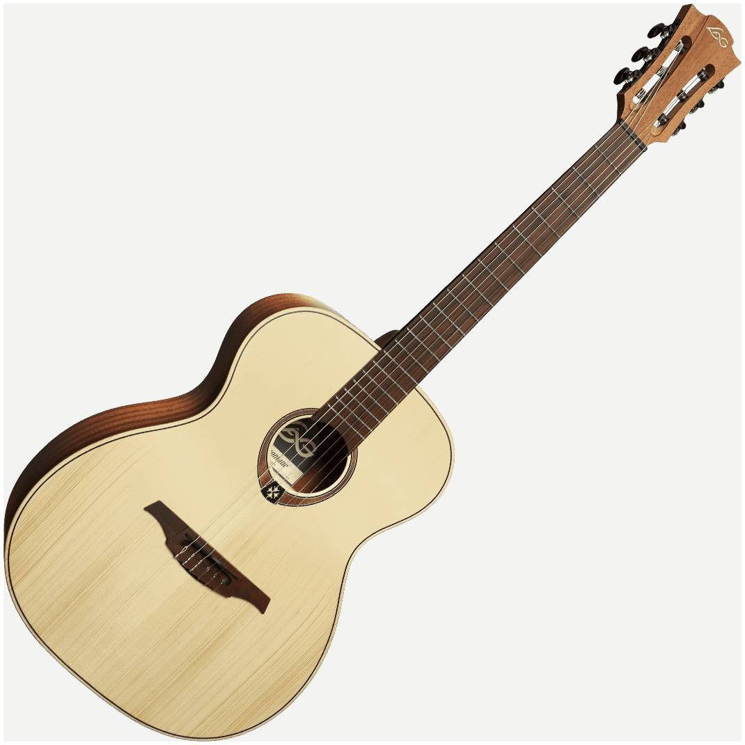 LAG GLA TN70A NAT выделяется на фоне гитар начального уровня своим звучанием. Это достигается за счет верхней деки из массива ели, которая отличается звонким и громким звучанием. Качество звука в сочетании с удобством игры на инструменте является идеальным вариантом для начинающего музыканта.