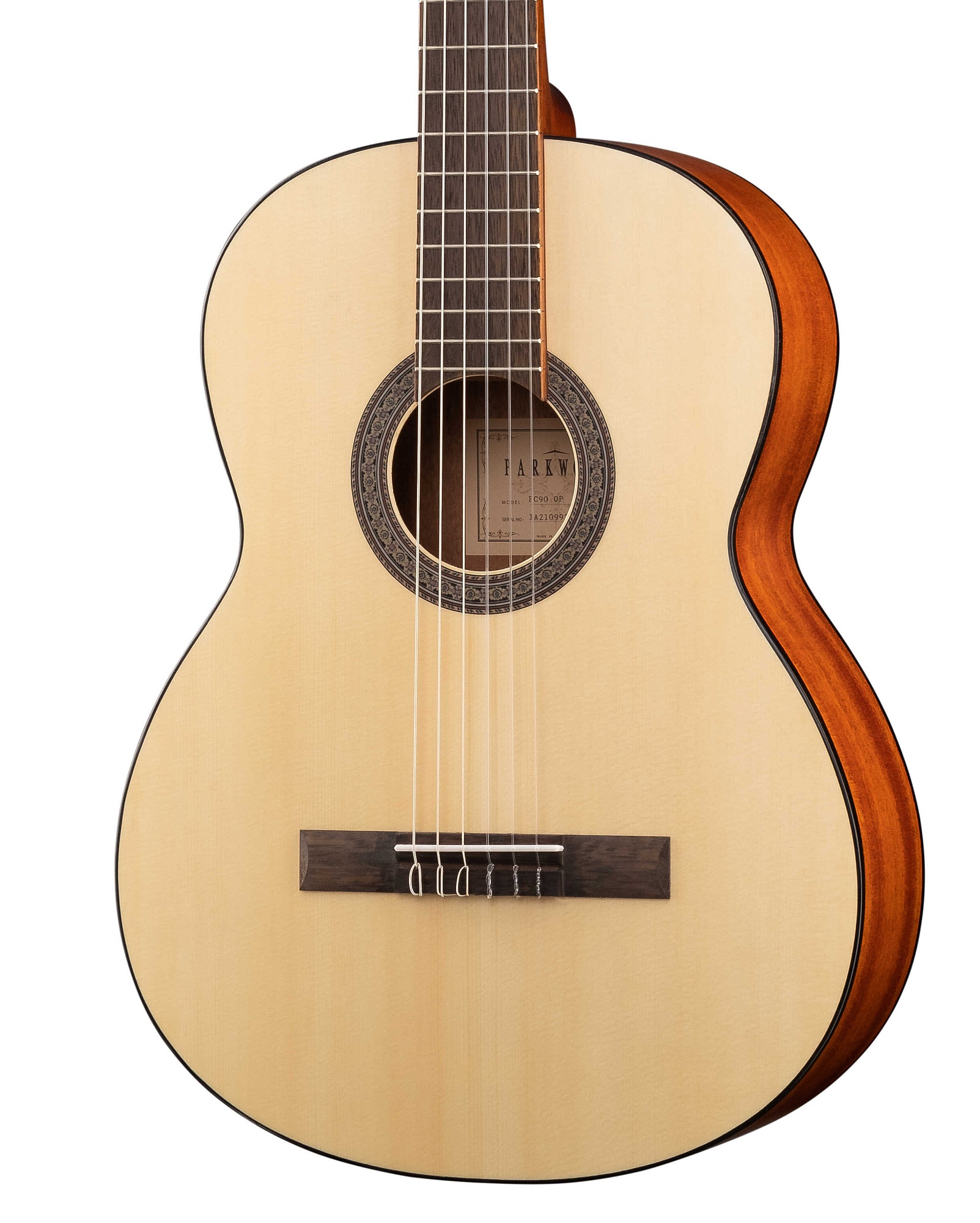 Верхняя дека изготовлена из ели, благодаря чему инструмент имеет резонансное звучание, которое действительно улучшается с годами.