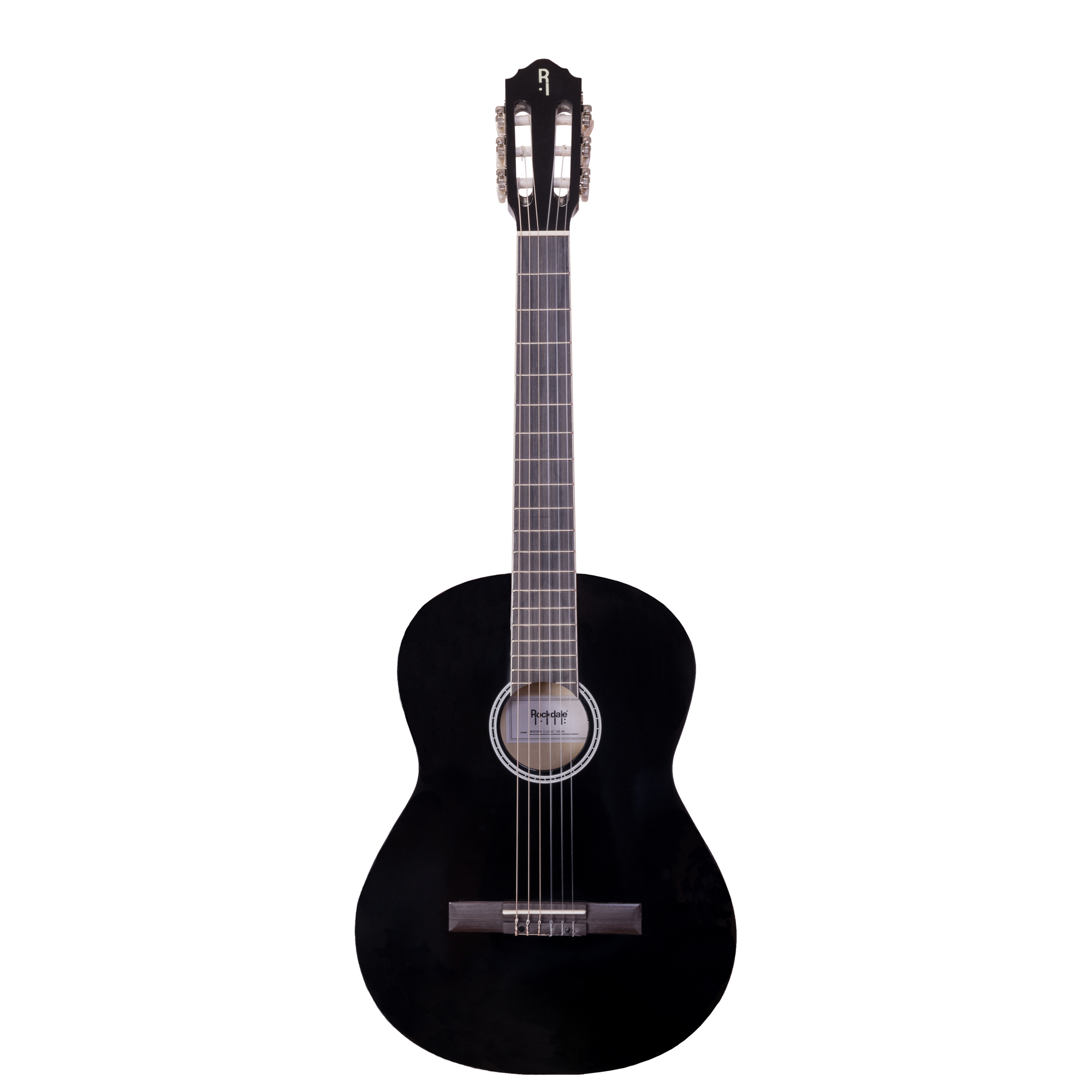 ROCKDALE MODERN CLASSIC 100-BK классическая гитара с анкером. Цвет черный. Глянцевое покрытие. Мензура - 650 мм. Верхняя дека, нижняя дека и обечайки из липы. Гриф из нато. Накладка грифа из древесно-полимерного композита.