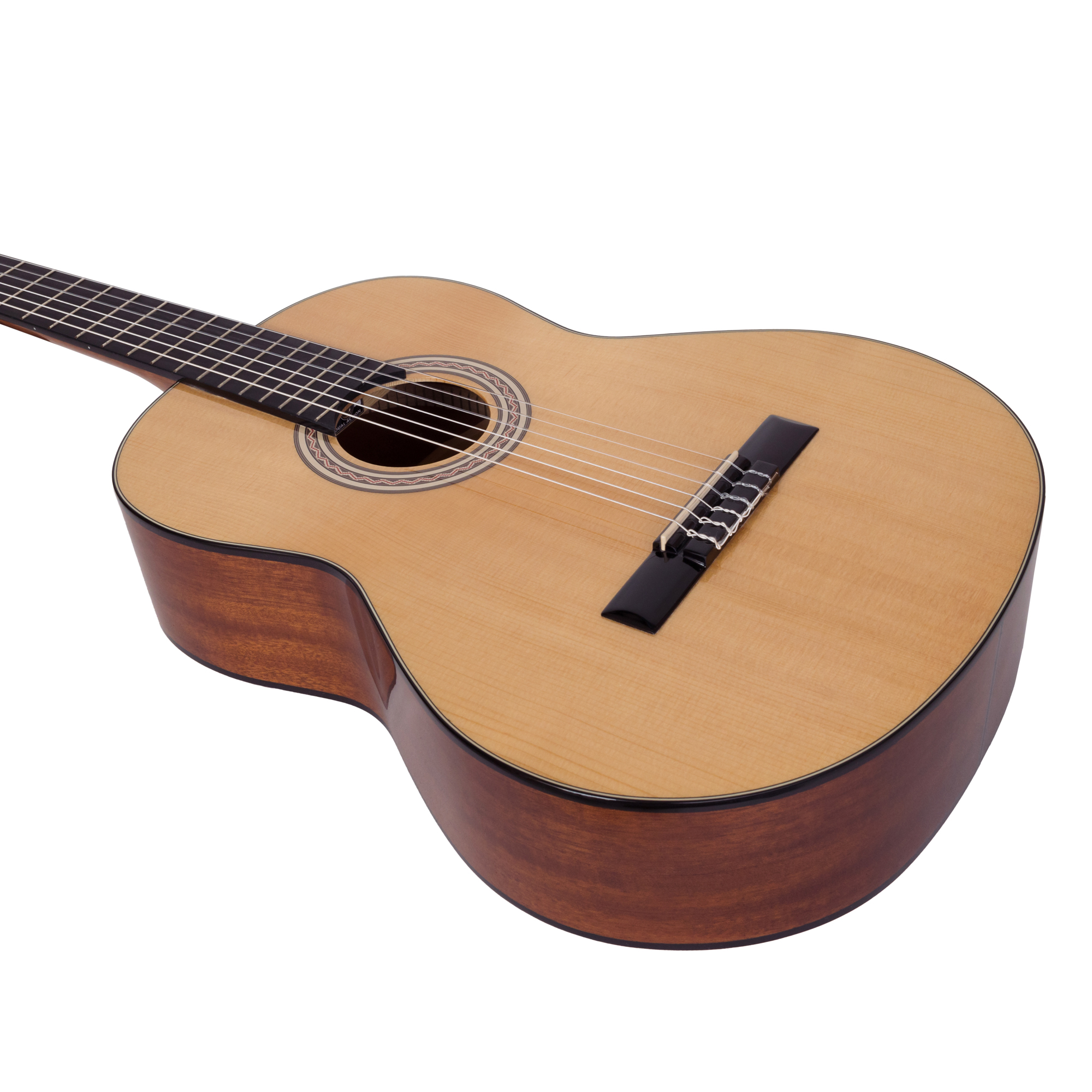 ROCKDALE Classic C7 классическая гитара. Размер 4/4. Цвет натуральный. Глянцевое покрытие. Верхняя дека из массива ели. Нижняя дека и обечайка из сапеле. Гриф из махагони. Анкерный стержень. Накладка на гриф и бридж из палисандра. Нейлоновые струны.