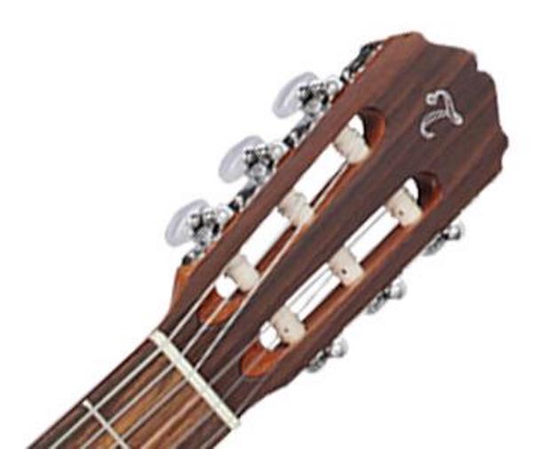 TAKAMINE G-SERIES CLASSICAL GC1-NAT – классическая акустическая гитара с красивым звучанием. Это достаточно бюджетная модель, которая по качеству материалов, сборки и своим акустическим характеристикам существенно превосходит другие инструменты своей ценовой категории. Верхняя дека гитары выполнена из отборной древесины ели. Нижняя дека и обечайка – из красного дерева. Такая конструкция позволяет получить богатое, насыщенное звучание, сбалансированное, с прекрасным резонансом. Гриф гитары также выполнен из красного дерева. Накладка – из лавра, без инкрустации. Порожек и седло – из синтетической кости. Ширина верхнего порожка – 2 дюйма (50,8 мм). Представленная модель - натурального цвета с глянцевым покрытием. Розетка красиво оформлена мозаикой, колки – хромированные, с перламутром.
