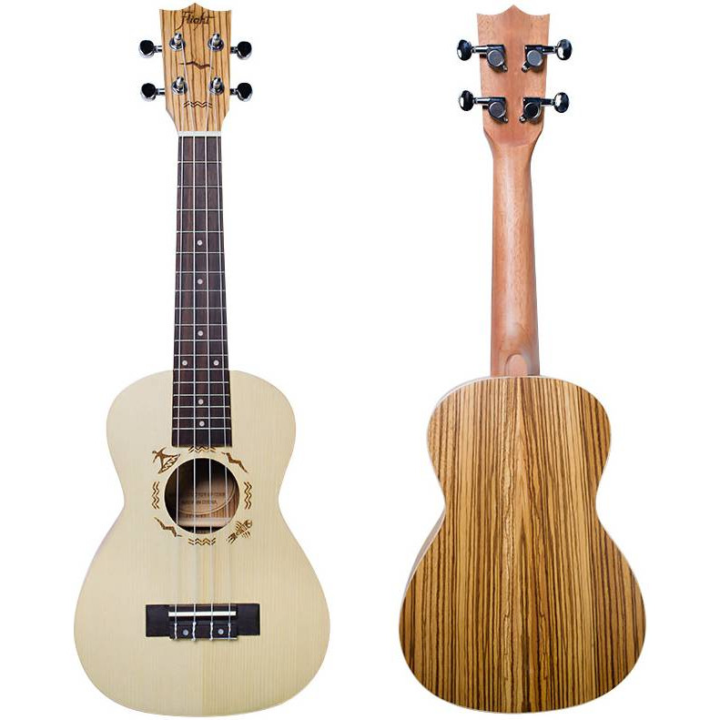 Корпус из зебрано - одна из самых красивых пород древесины, встречающихся на укулеле Flight, - привлекает внимание не только потрясающим внешним видом, но и звучанием - высоким, оригинальным и красочным.