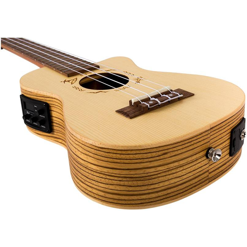 FLIGHT DUC328 CEQ SP/ZEB – прекрасная укулеле концерт, звучит одновременно ярко и тепло, благодаря уникальной комбинации еловой деки и корпуса из зебрано. Вы удивитесь, насколько мощный звук может выдавать ваша укулеле с изогнутой задней декой. Уверены, эта укулеле будет радовать вас долгие годы. Технические характеристики:
