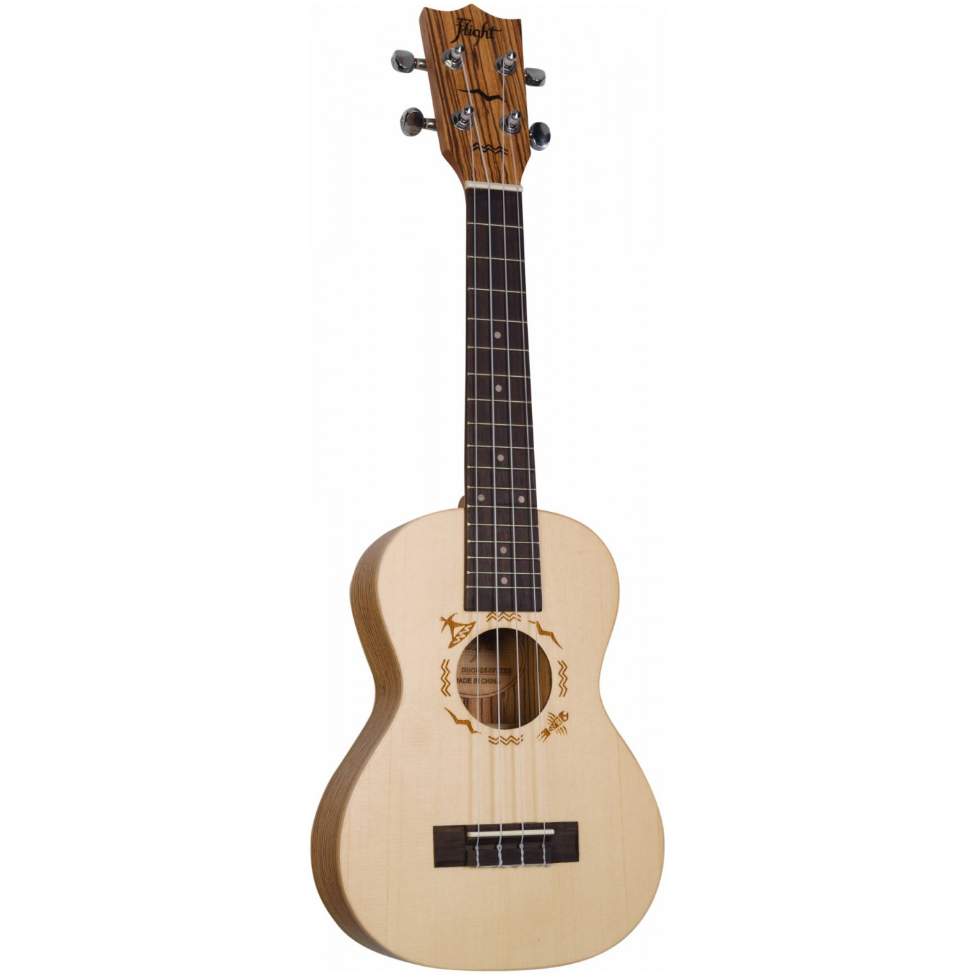 Укулеле DUC 525 SP/ZEB совсем не так проста, как кажется! Это классическая укулеле размера концерт. Ее верхняя дека - из массива ели (благодаря чему звук инструмента сильнее и глубже, чем у инструментов с ламинированной декой), а ее корпус из удивительно красивой породы дерева - зебрано. Отличительные особенности укулеле DUC 525 SP/ZEB: