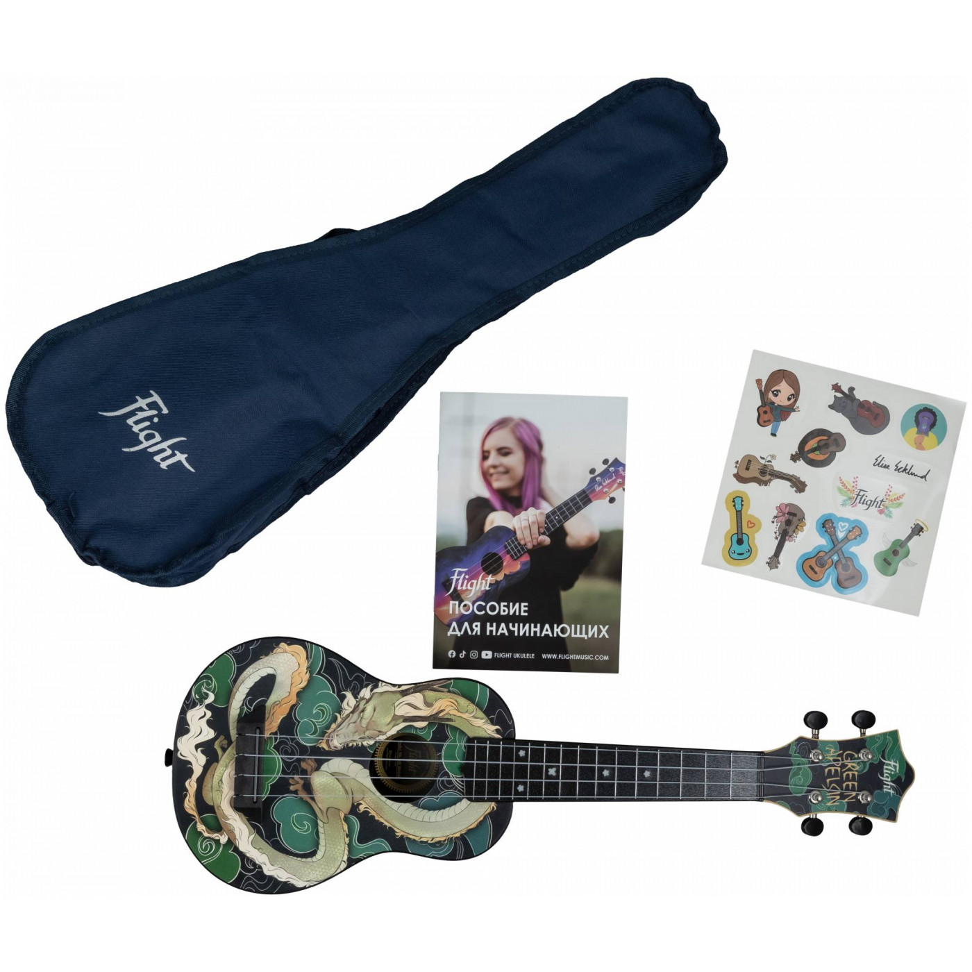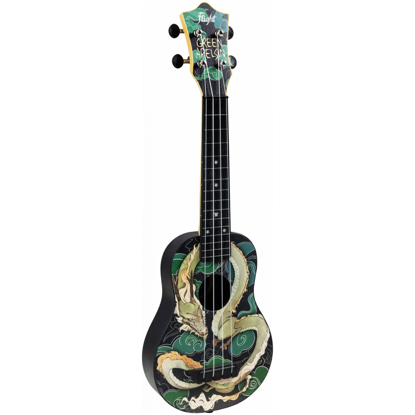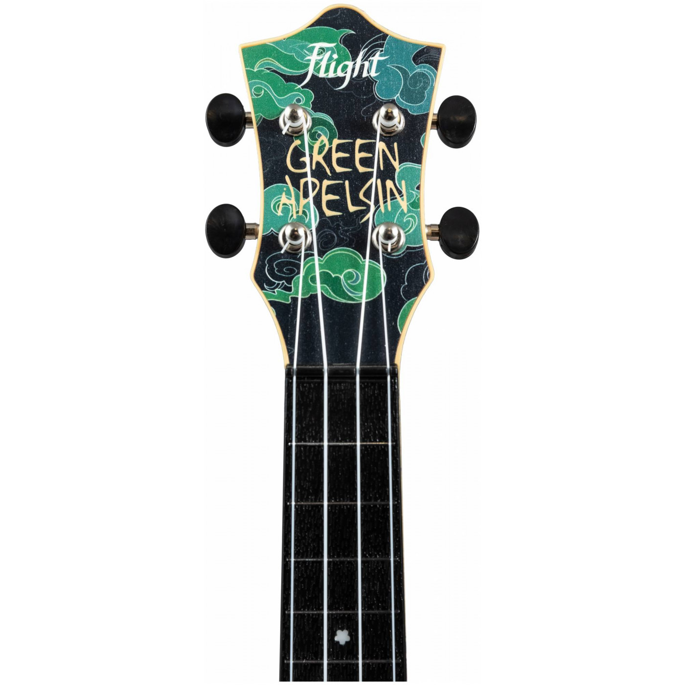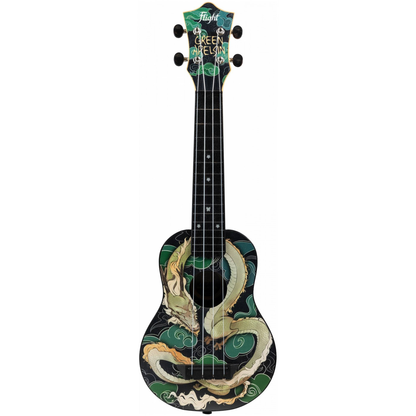 Модель укулеле FLIGHT TUS-JADE DRAGON от Green Apelsin – идеальный инструмент для Анжелы и её поклонников: яркая и стильная укулеле, отражающая её уникальный творческий стиль. Глубокий зелёный оттенок верхней деки напоминает о сценическом имени и символизирует природу и свежесть – как сочетание фольклора и современных мотивов её музыки. Голова грифа украшена фирменной надписью псевдонима певицы – Green Apelsin.