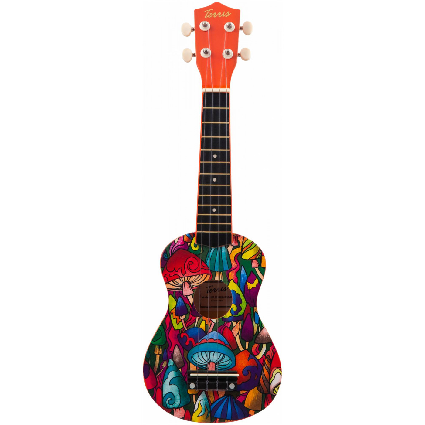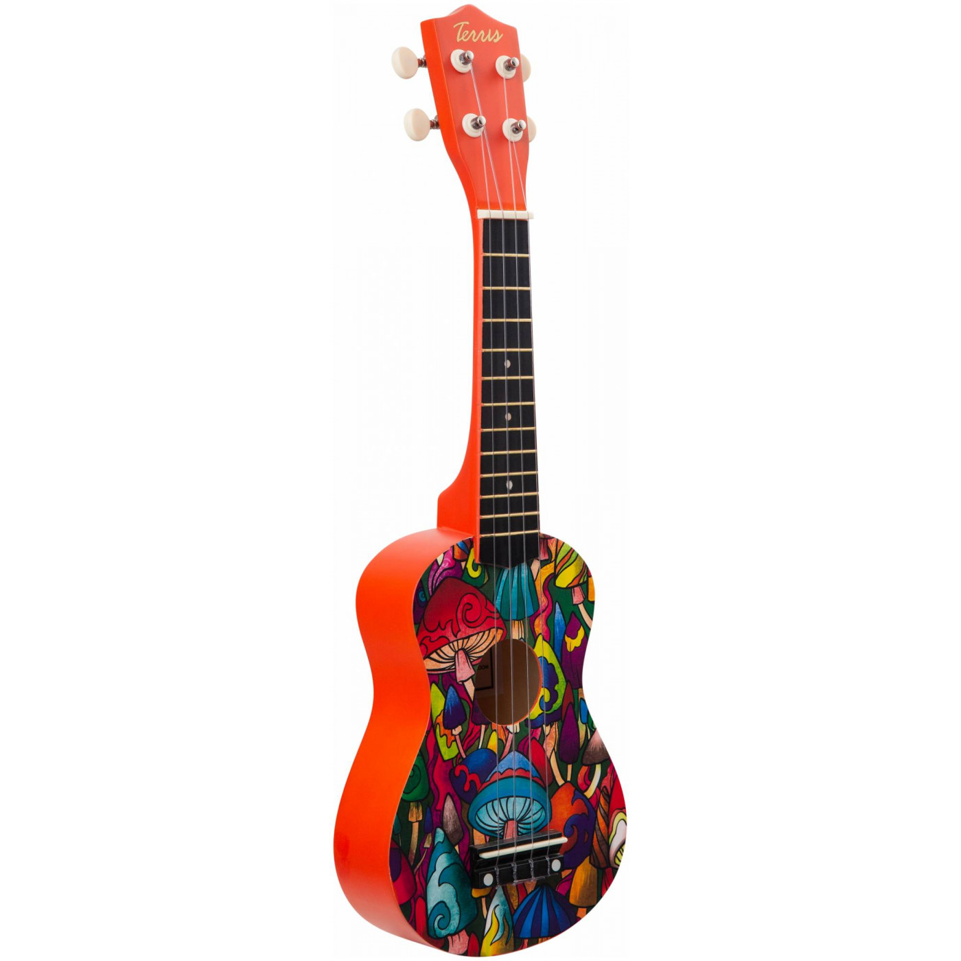 Укулеле TERRIS JUS-21 MUSHROOM - отличный выбор, если нужен подарок для детей или для любимой девушки. Стильный и красочный дизайн, мягкое звучание маленькой гавайской гитары не оставят равнодушными никого.