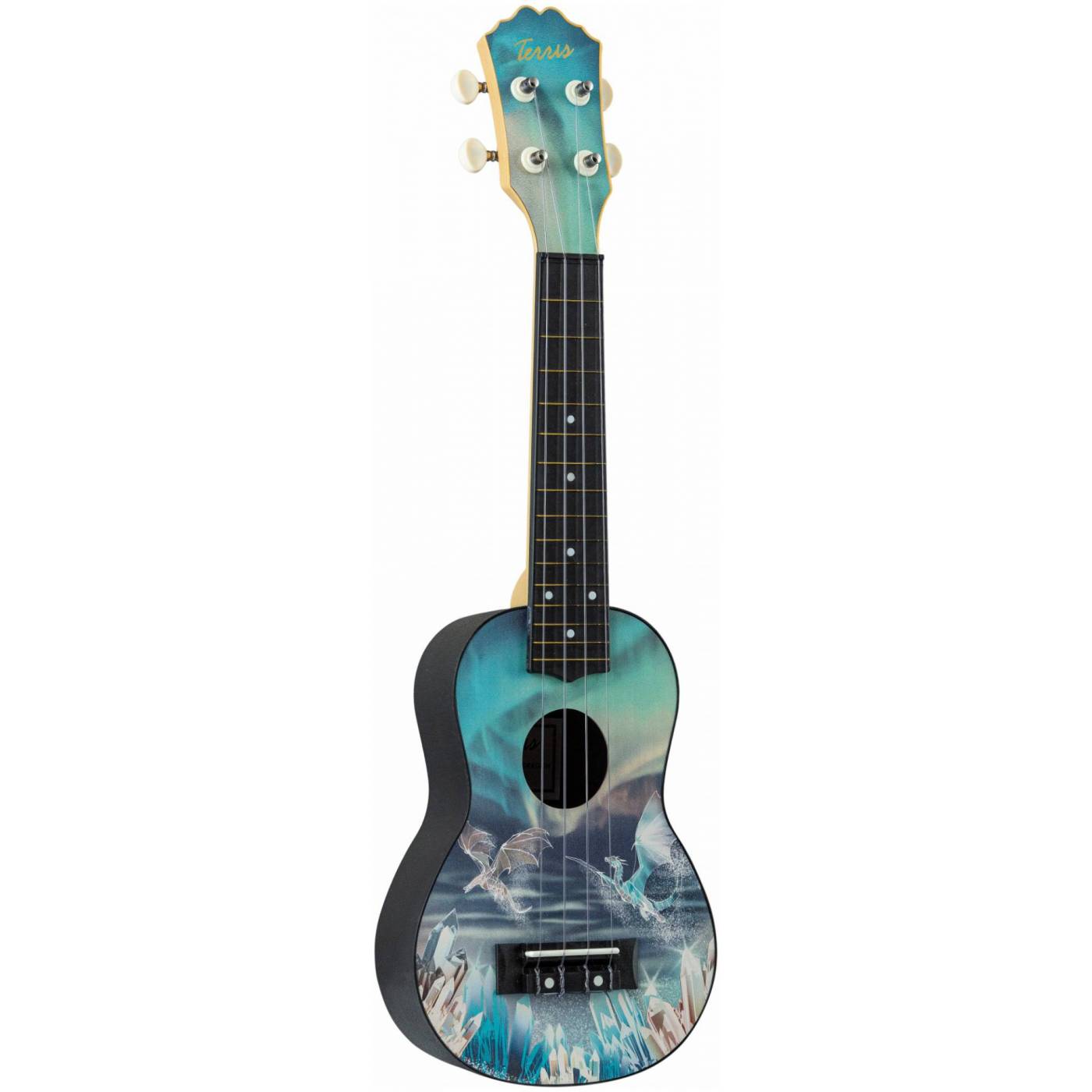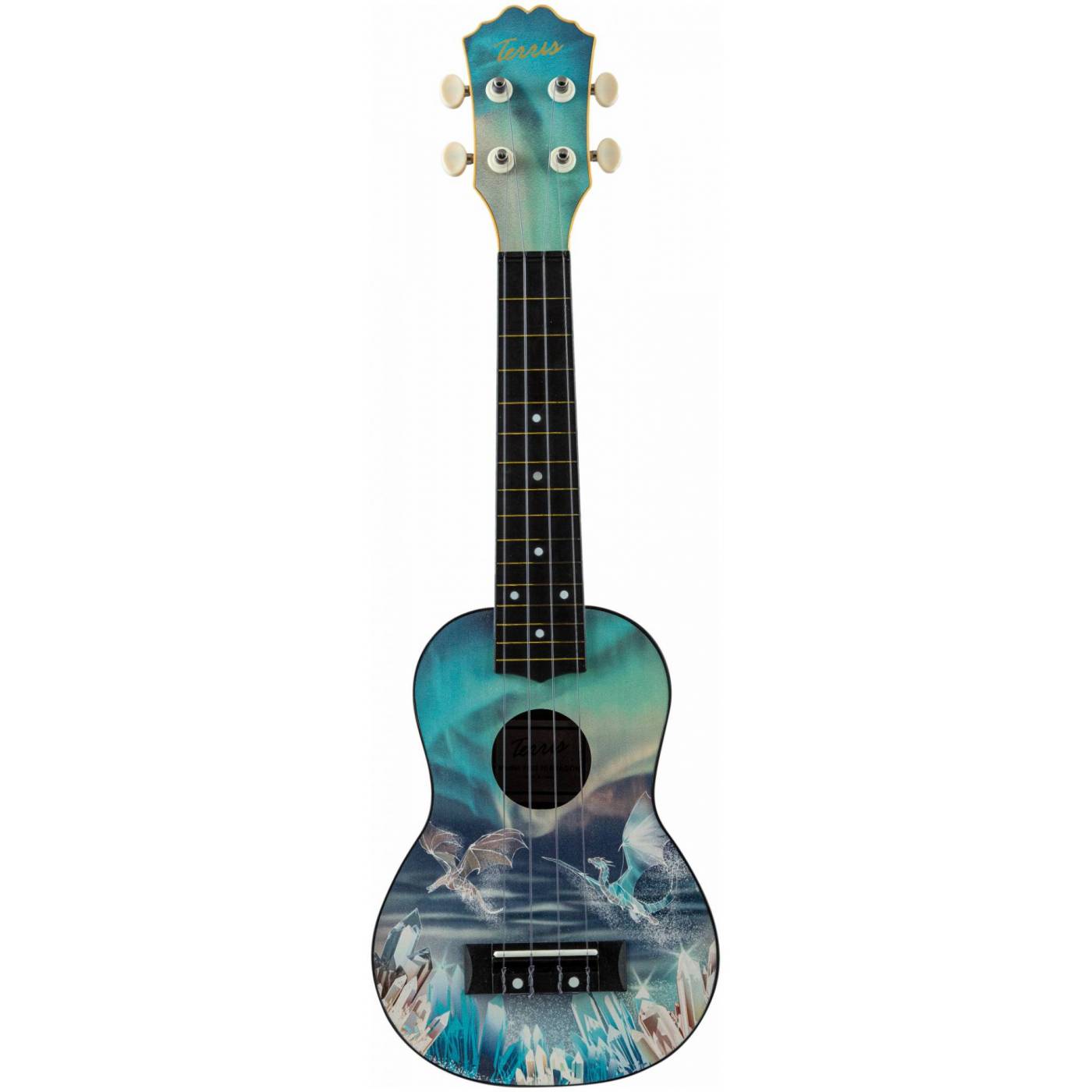Укулеле TERRIS PLUS 70 DRAGON - завораживающая укулеле с парящими над кристаллами драконами на фоне северного сияния.