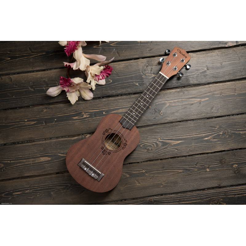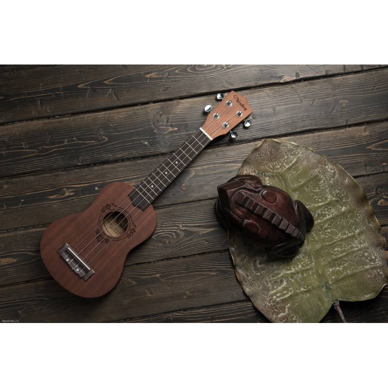 Укулеле VESTON KUS 20NT - отличный выбор, если нужен подарок для детей или для любимой девушки. Стильный и красочный дизайн, мягкое звучание маленькой гавайской гитары не оставят равнодушными никого.