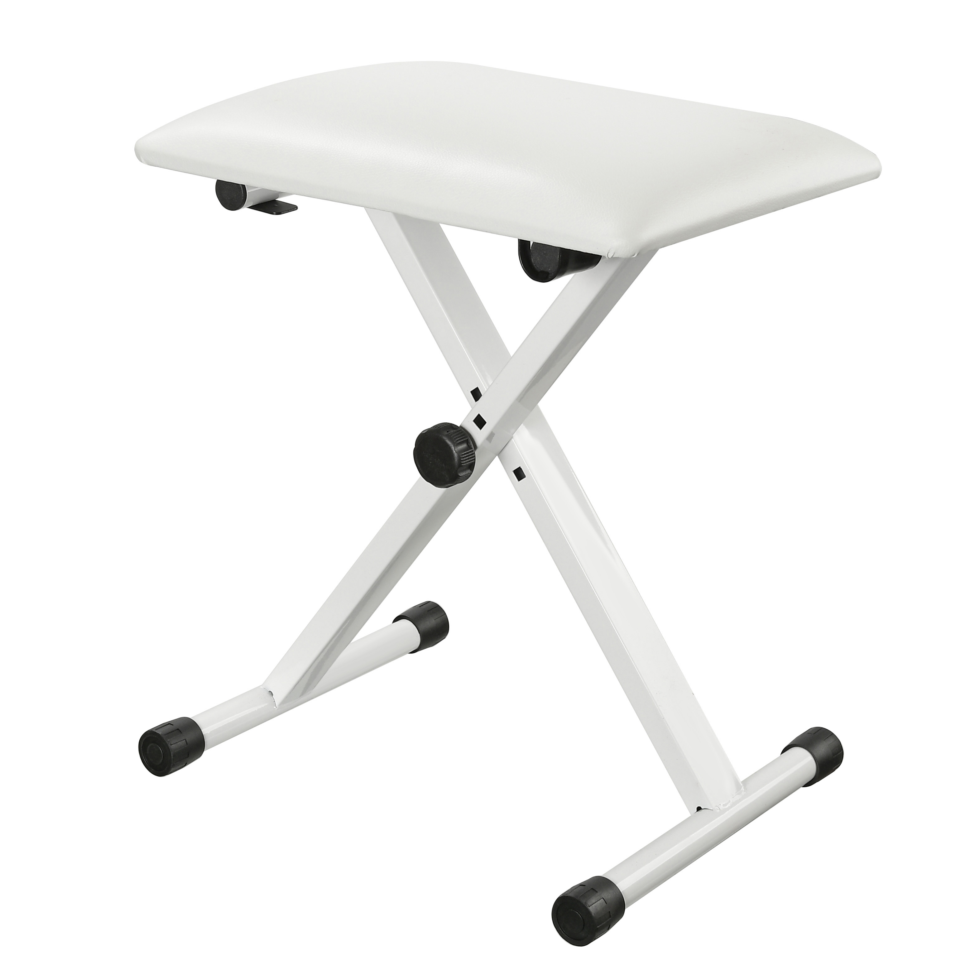 Банкетка для пианино, рояля, синтезатора DEKKO JR-701 BK металлическая, прямоугольная (размер 39,5х29,5см), 3 положения регулировки высоты (42-45-48 см.), мариал обивиа - кож. зам., складная, цвет - белый.