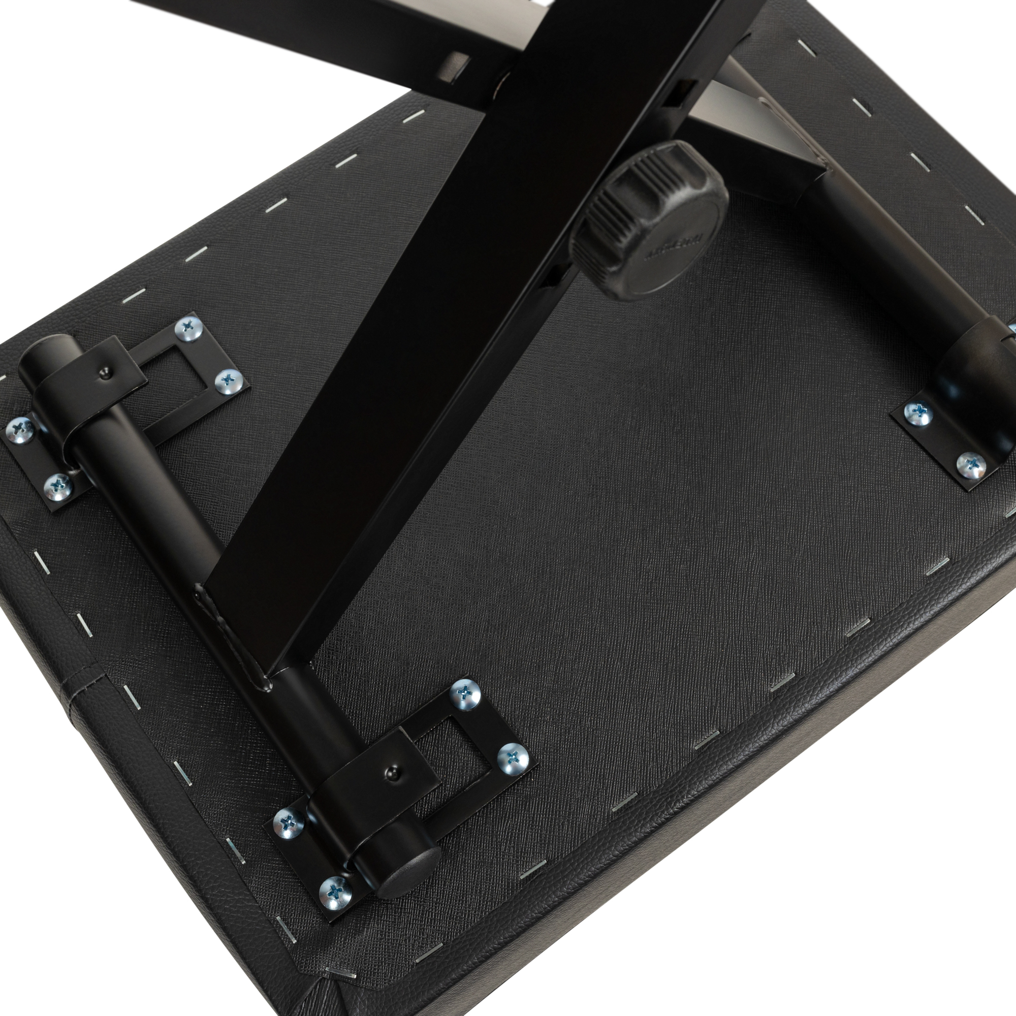 ROCKDALE Q-100 – компактная банкетка для пианиста с трехпозиционной системой регулировки высоты. Сиденье размером 40х30,5х6, состоит из мягкого наполнителя и внешней обивки из стойкой к истиранию искусственной кожи черного цвета. Увеличенная высота сиденья 6 см, делает его более комфортым и мягким. В ROCKDALE Q-100 доступно 3 фиксированных положения высоты - 50 см, 52 см и 54 см, что подойдет как ребенку, так и взрослому. Резиновые накладки на ножках обеспечивают высокую устойчивость при использовании, а благодаря продуманной складной конструкции банкетку удобно хранить и транспортировать.