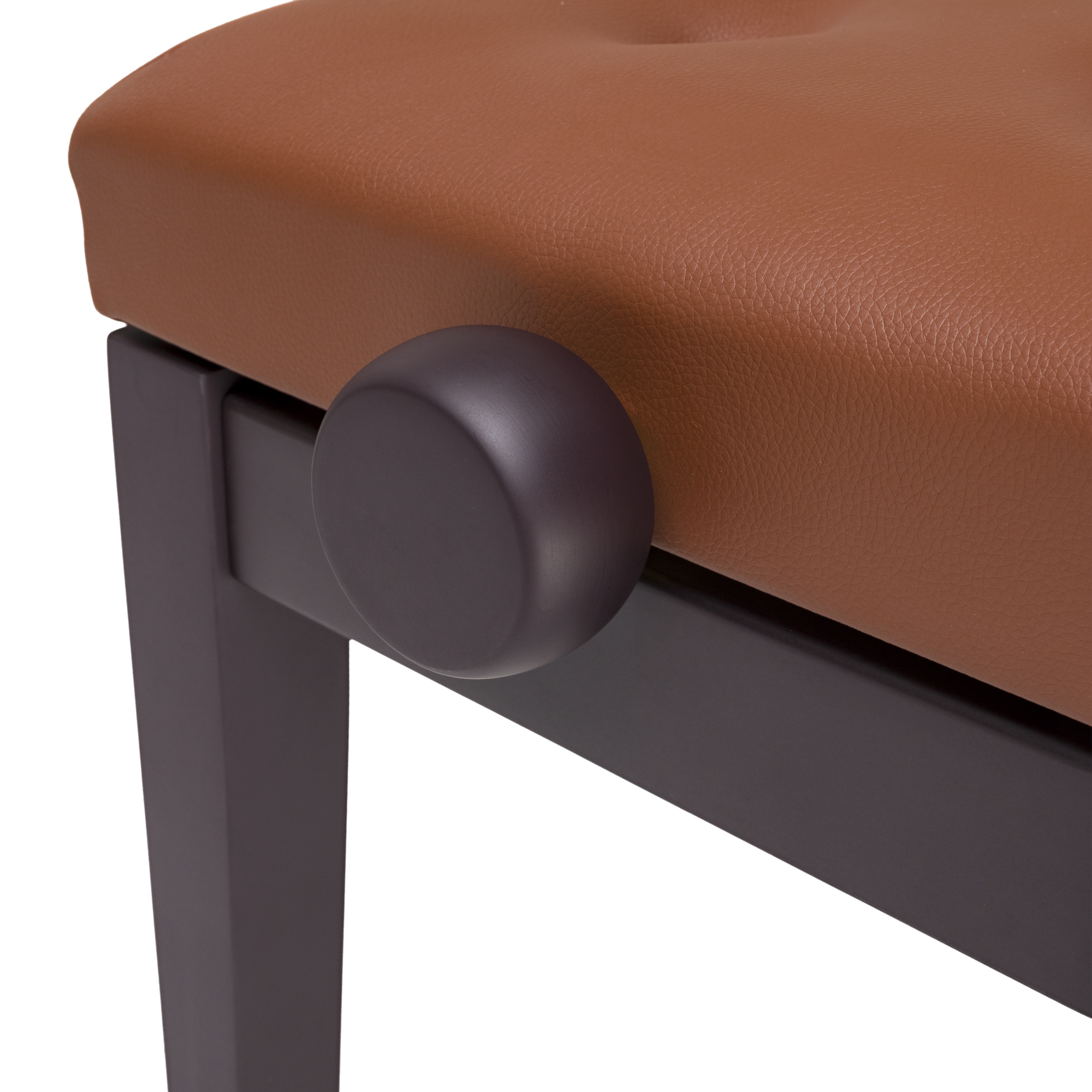 ROCKDALE RHAPSODY 130 ROSEWOOD BROWN деревянная банкетка с регулировкой высотыот 47 до 56см, матовое покрытие, размер сиденья 55x33 см, цвет корпуса rosewood (палисандр), материал сиденья износостойкий кожзам, прошитый пуговицами по методу каретной стяжки, цвет сиденья коричневый